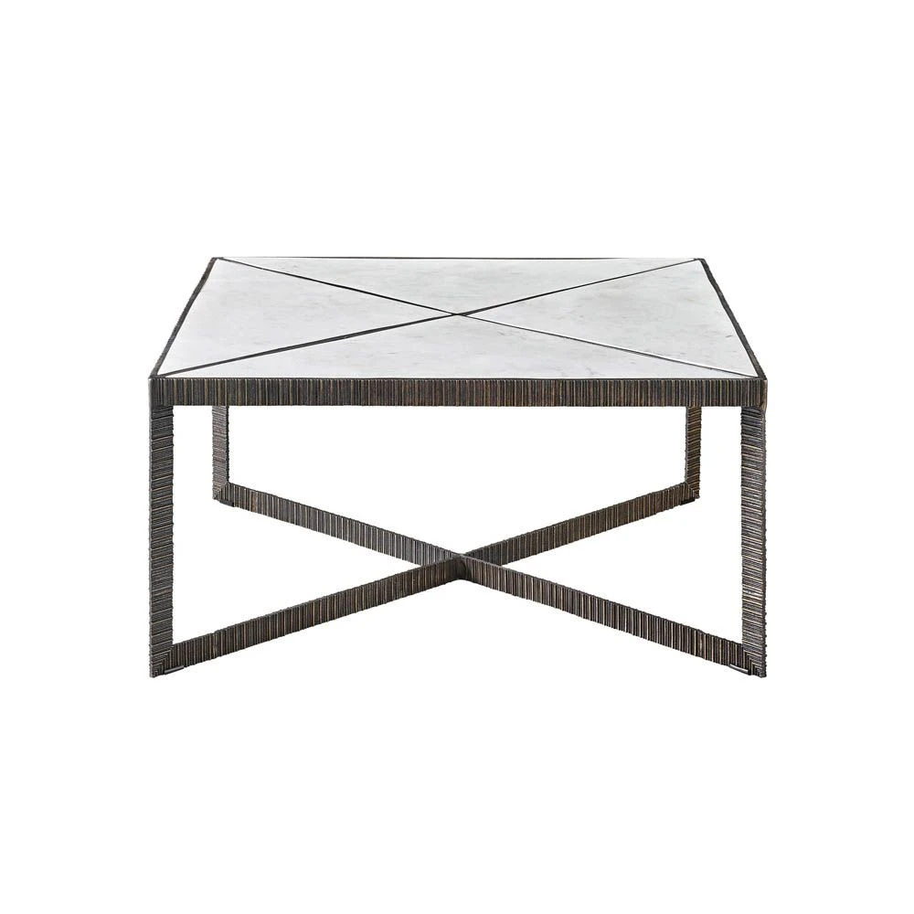 A thoughtful play on opposites, the Abstraction Marble Top Coffee Table features a balance of light and dark finishes meticulously paired with surfaces both smooth and ridged, creating ultimate intrigue.