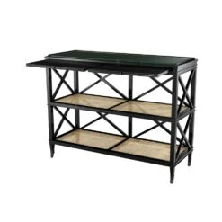The elegantly carved cross over bar at the base of the legs really makes this piece. With a wooden top and beautiful olive patented base that has been delicately distressed, the natural colouring of this console table makes it ideal for almost any room