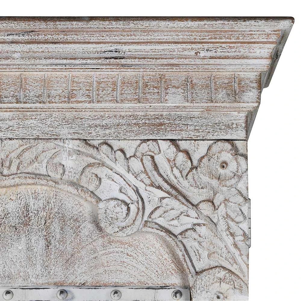 Bring bold, yet rustic charm to your space with this large Amrit Cabinet. Featuring three internal shelves and carved floral motifs on the doors, this cabinet will bring a heightened sense of taste to home interiors that adore a classic twist.