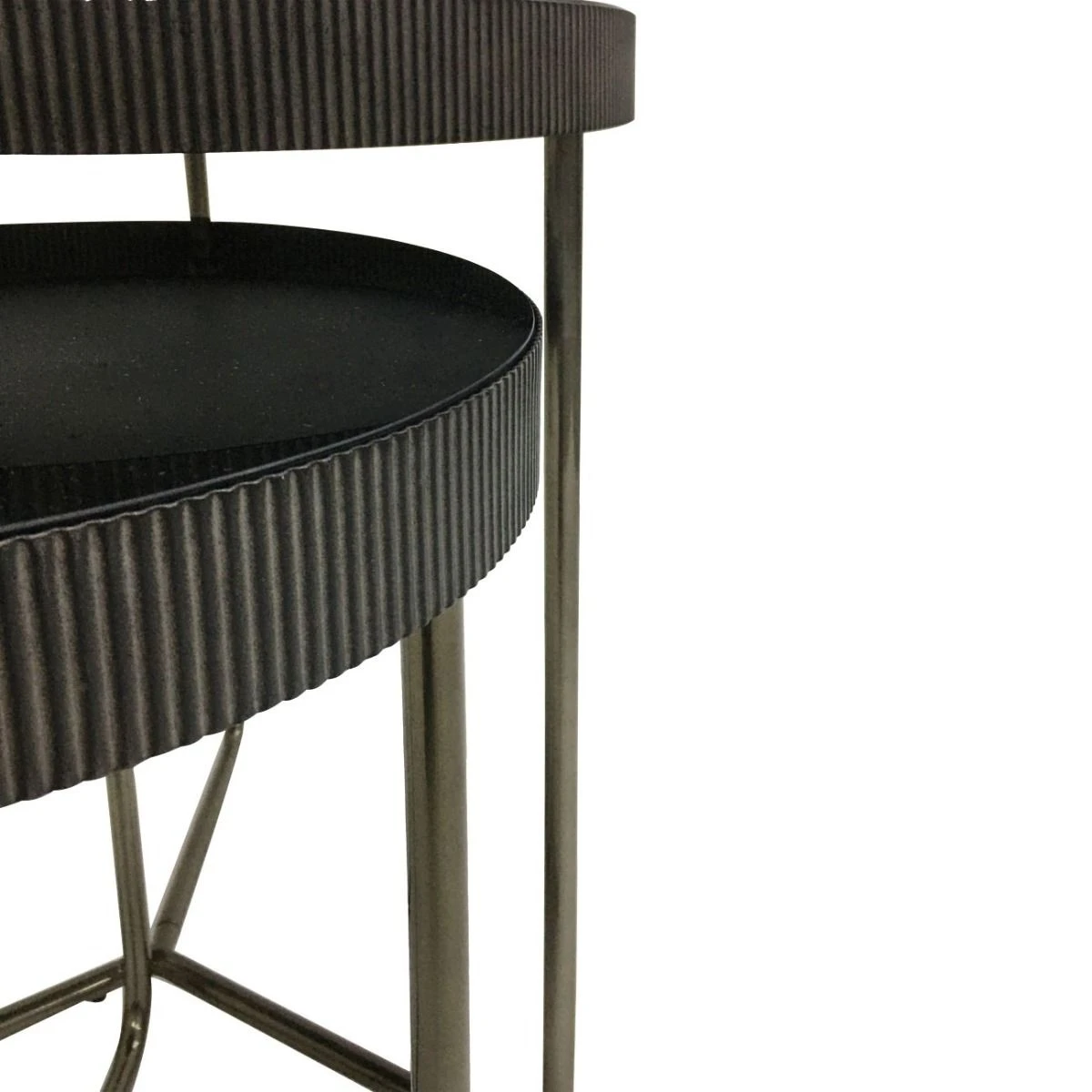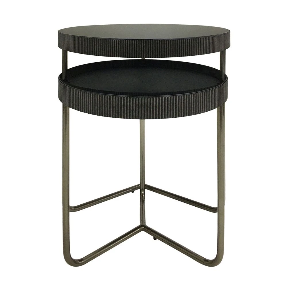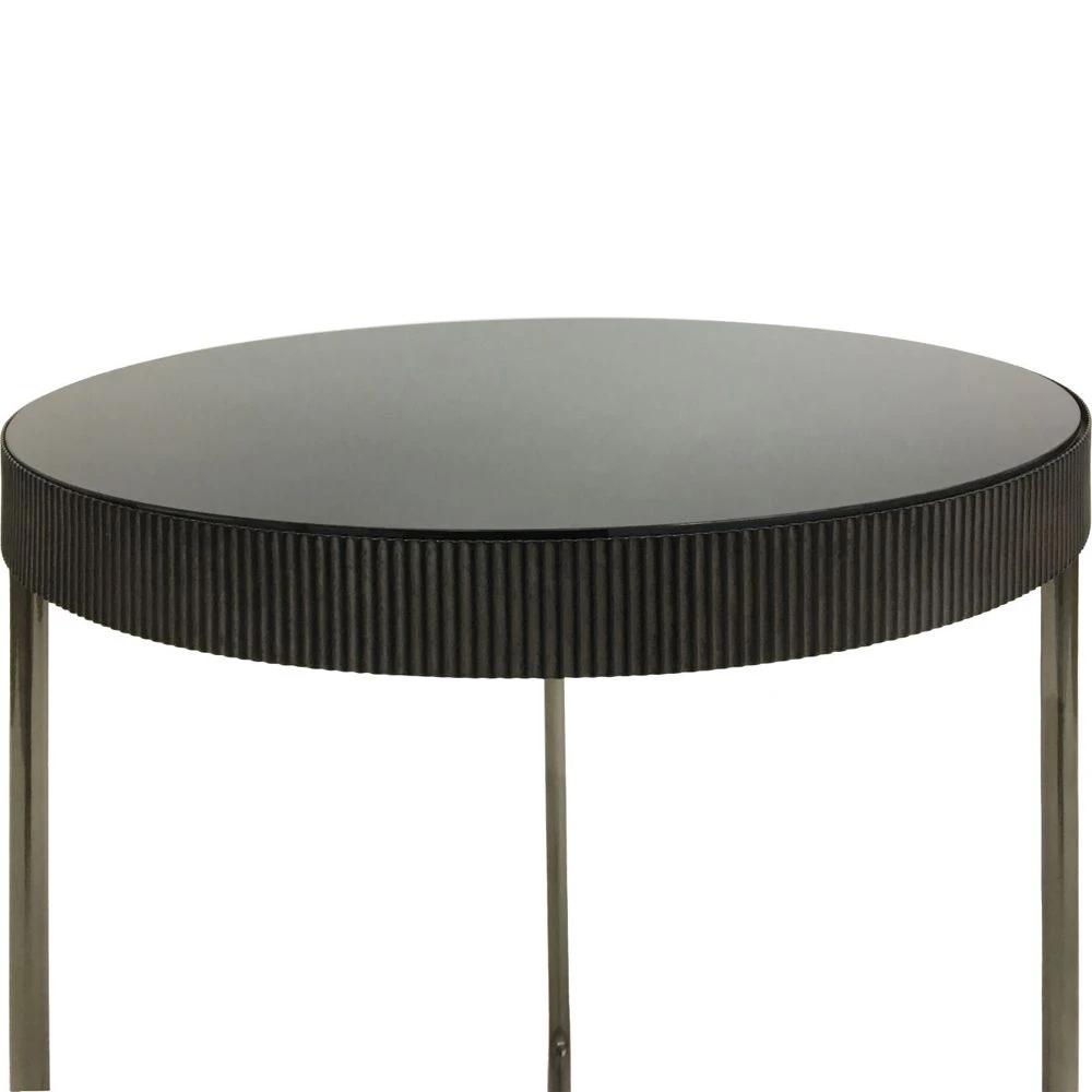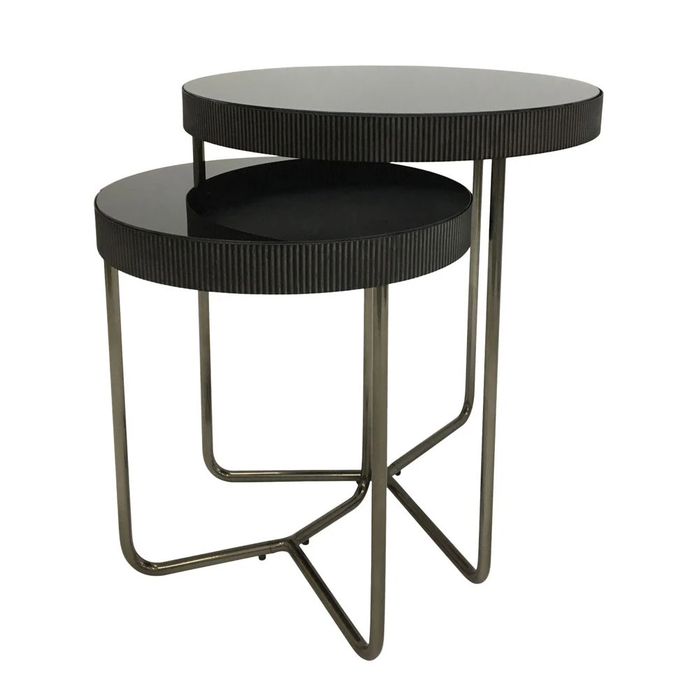 Add an effortless, designer look to your space with the set of two Baron Side Tables. With its contemporary shape and black tinted glass surface, the Baron Side Tables create a perfect contrast for a contemporary, neutral-toned interior. This gorgeous piece also features non-glossy bronze elements such as the edge and legs.