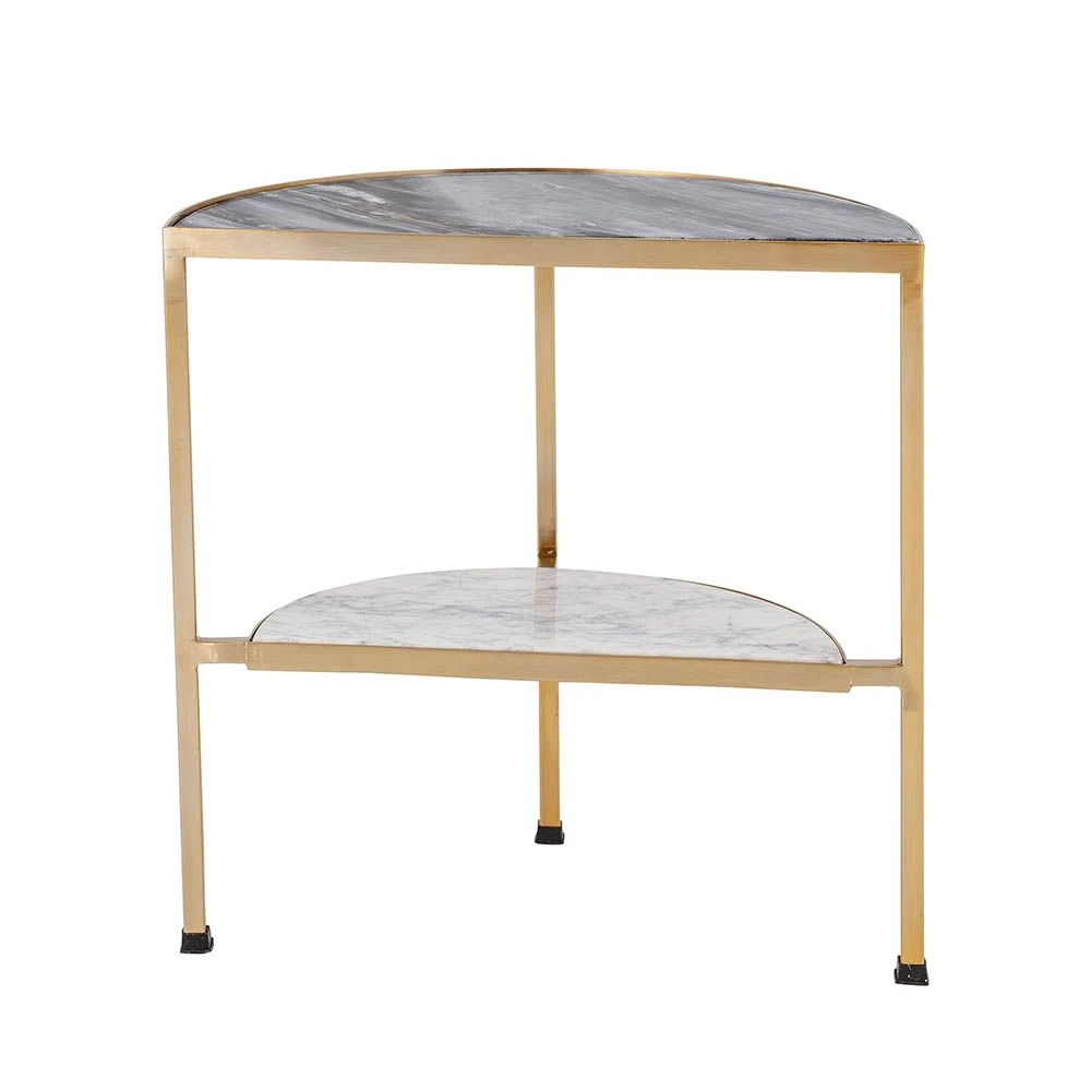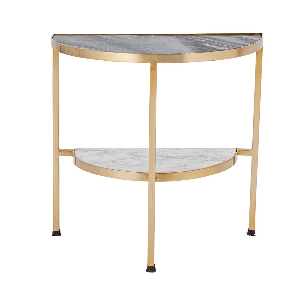 This beautiful side table boasts stunning gold detailing and grey marbled table tops, leading to a modern and timeless design. With its half-circle construction, this piece is perfect against the side of a sofa or against a wall to create extra visual interest for a perfect interior display or a place to rest your cup of coffee or glass of bubbly.
