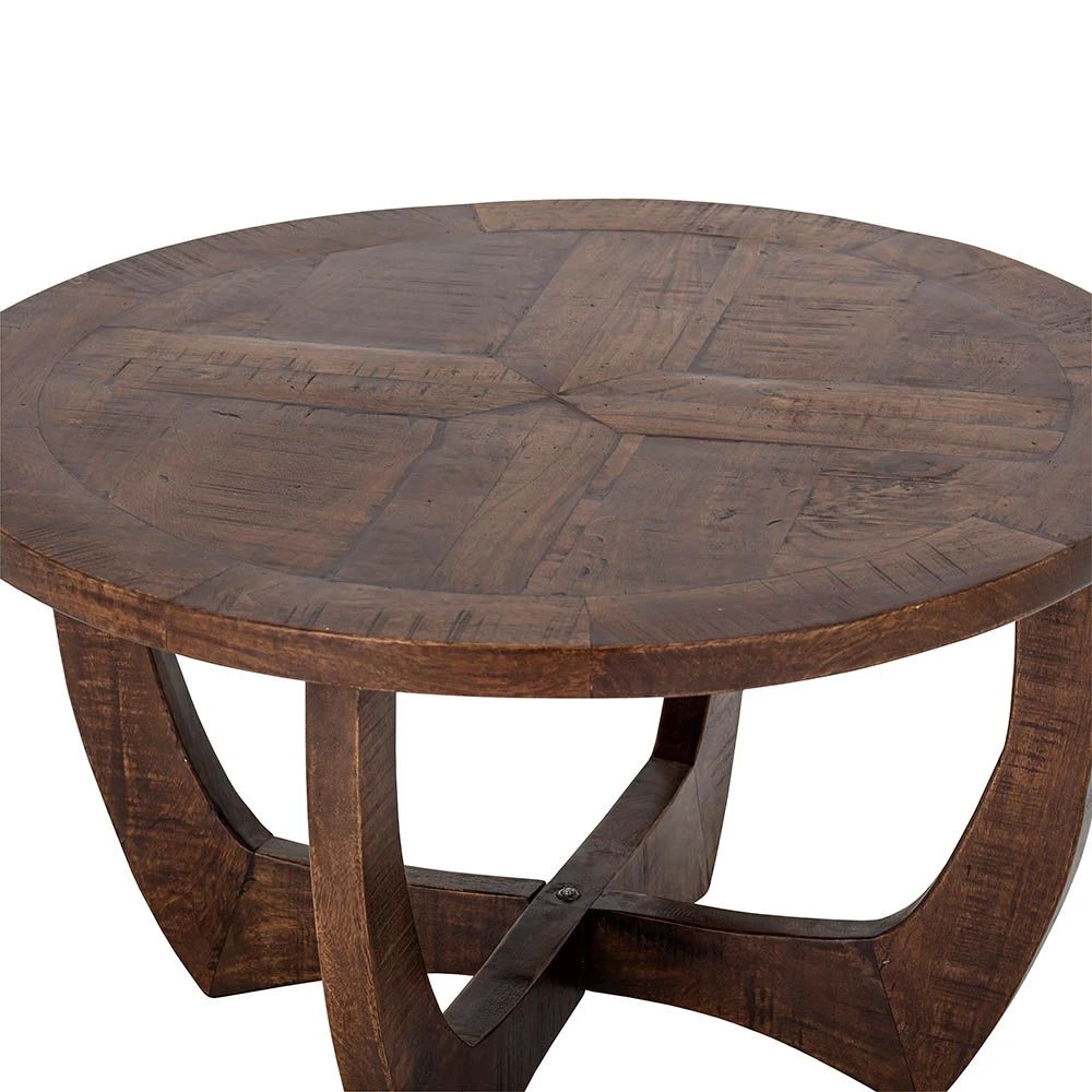The Jassy Coffee Table boasts a stunning take on the classic round table. With curvaceous carved legs, supporting the tabletop with an interlocking design, this table is not only sturdy but is a stunning centrepiece for any interior. Crafted from Mango wood with a dark stain, this piece maintains its organic beauty through every corner of natural wood grain displayed throughout.