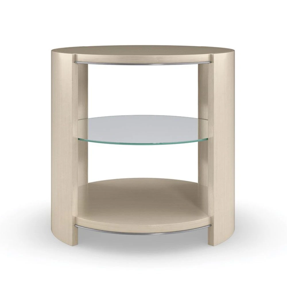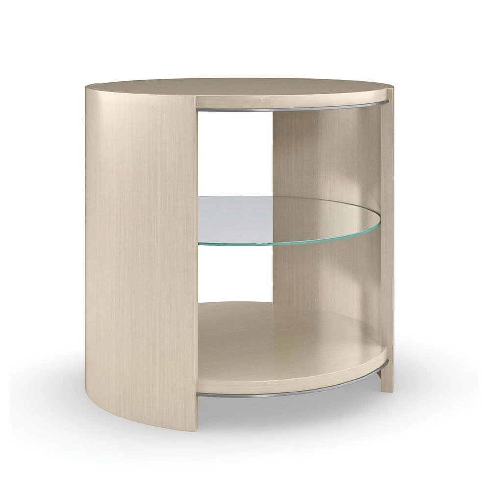 Give your space a captivating refresh with the stylish and softly rounded Da Vita Round End Table by Caracole. Its sculptural shape and curvaceous design offer both storage and sophistication. Complete with an adjustable glass shelf and silver details, this contemporary accent table will look perfect on either side of a sumptuous sofa or alongside a statement armchair.