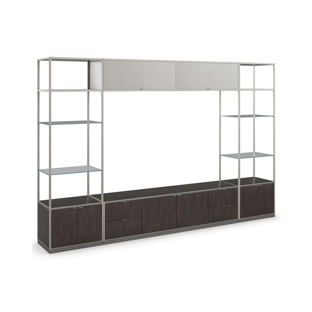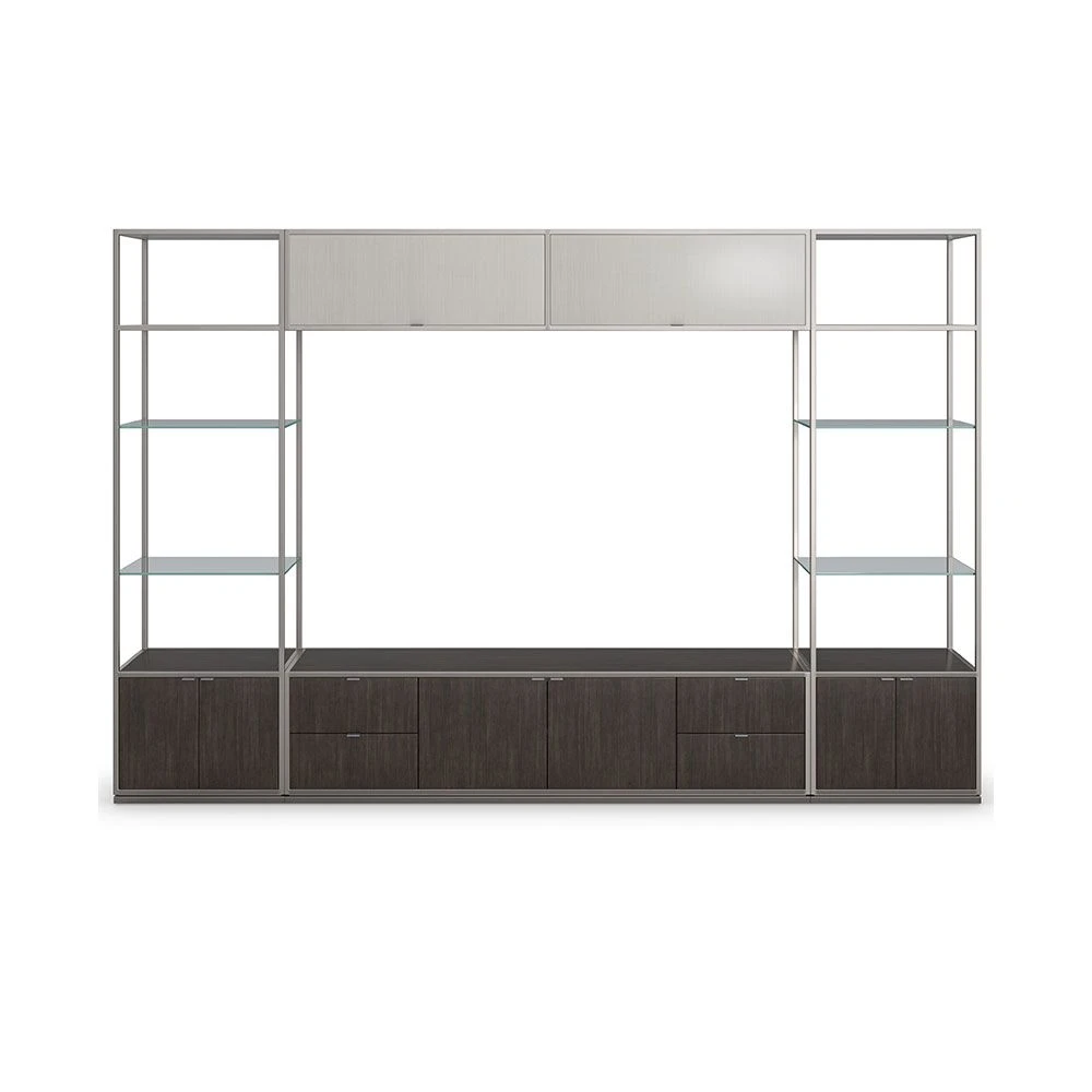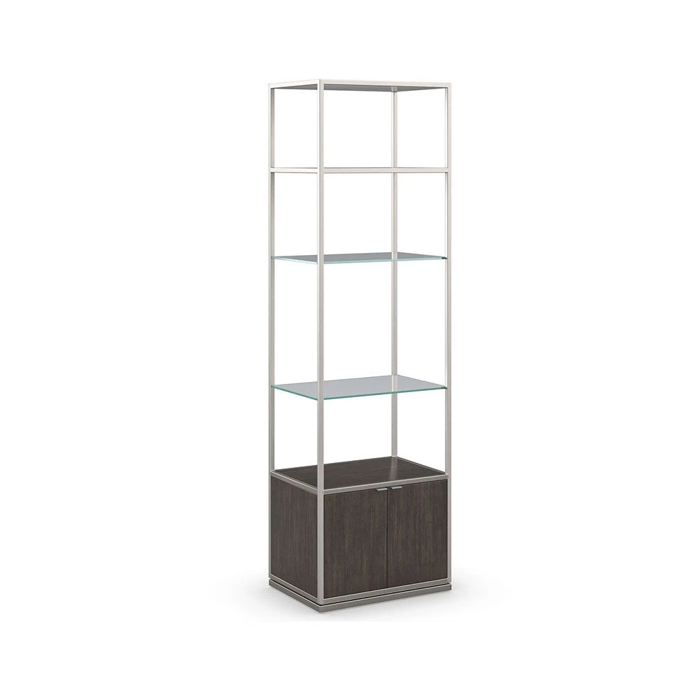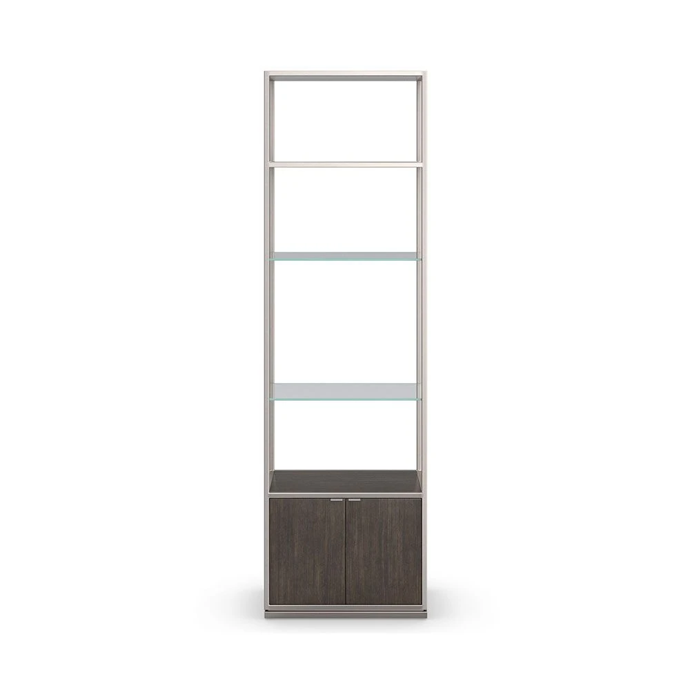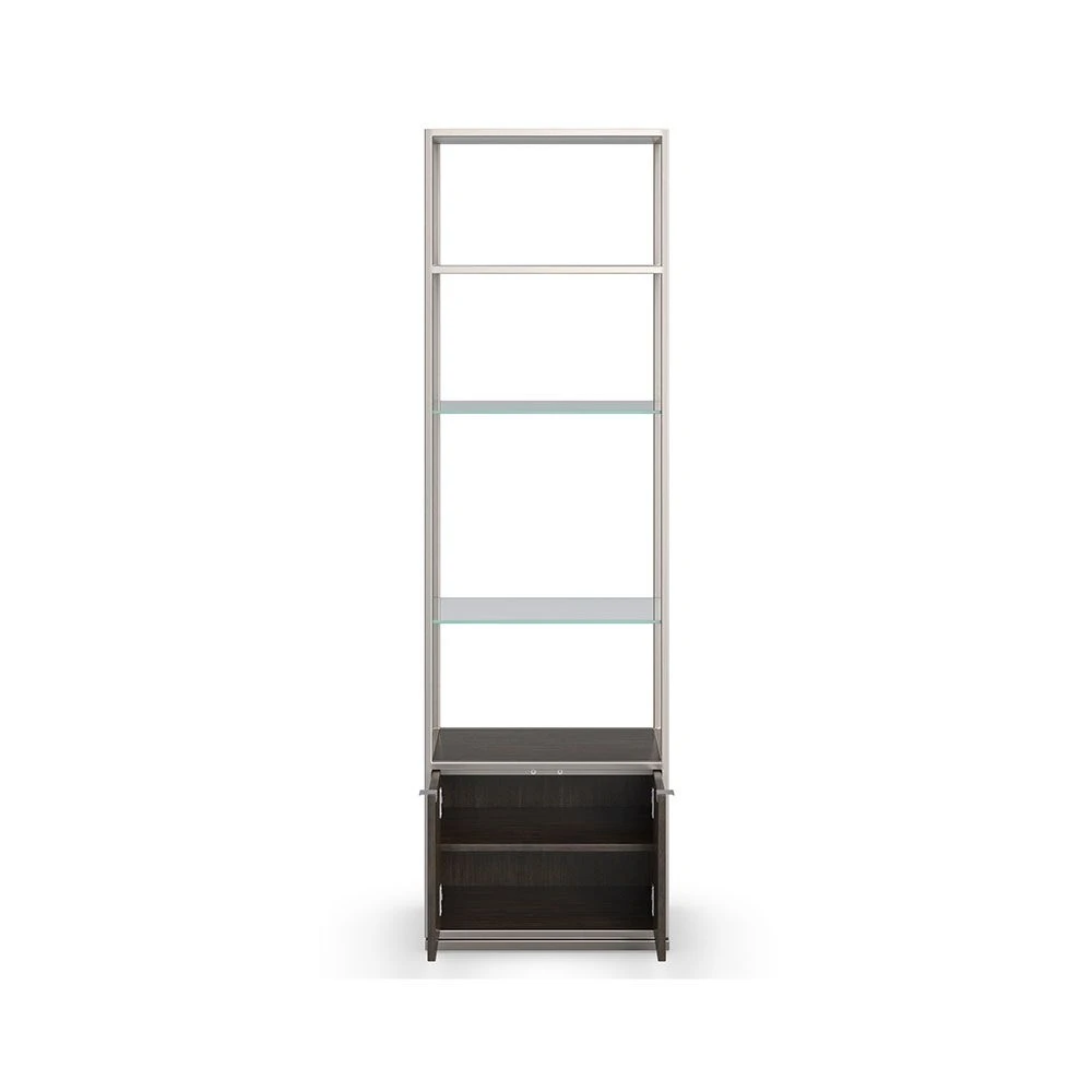 Curate a sculptural display with the modern, La Moda Pier Display Unit. This streamlined design has a towering profile and metal frame that is complemented by wood veneer and two glass shelves. Complete with additional storage at the base, this unit will look sophisticated alone or paired with the and