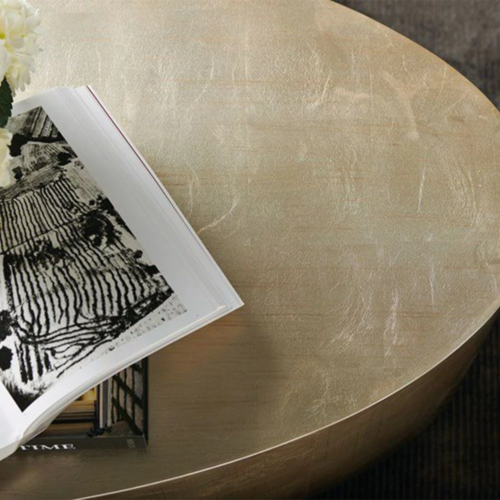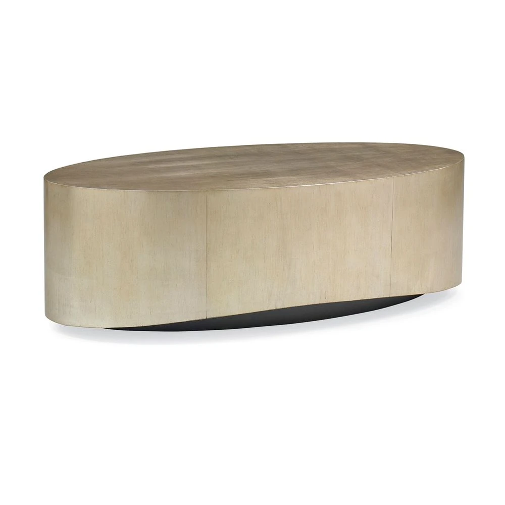 Accentuate your living area with the addition of this contemporary coffee table by Caracole. This charming coffee table features an organic, oval shape with a glamorous gold leaf finish and charcoal finished base. Let this statement piece add sparkle to your living area while completely transforming your interior.
