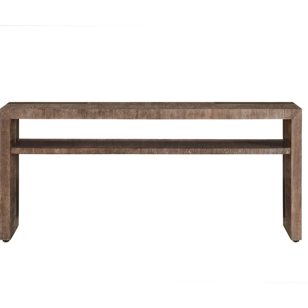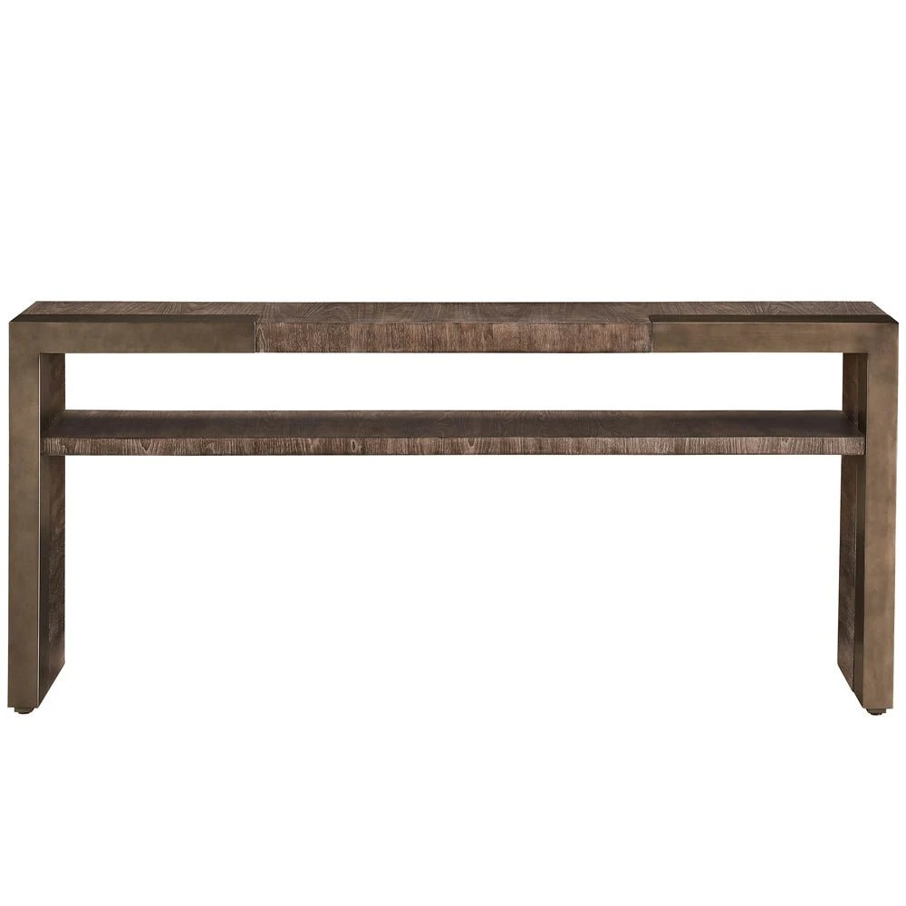 Give your space a timeless refresh with the stunning Cortado Console Table. This statement linear piece is accented with walnut wood finish and antique satin brass, as well as an open display shelf.