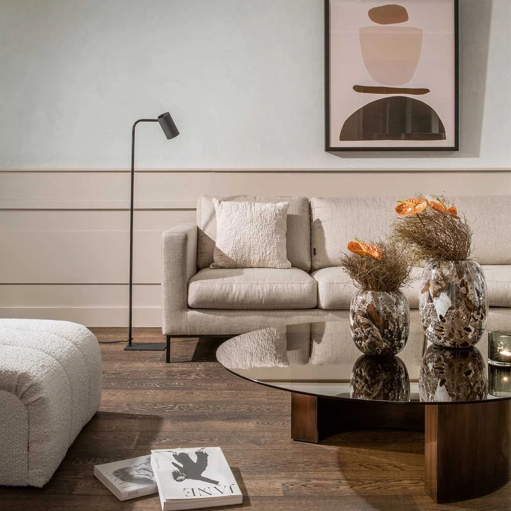 Indulge in a touch of mid-century chic with this exquisite, round glass-top coffee table. The Guana features a brown, wood effect base that provides this piece with a stunning silhouette and element of visual elegance that will instantly elevate any space it is placed in.