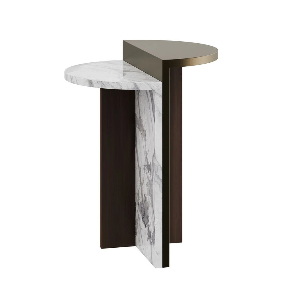 Create a sublime space for luxe living with the Puri Side Table by DΓ΄me Deco. With its interlocking silhouette and captivating mix of dark, rich metal and light marble, as well as a dynamic variation of height, this piece is wonderfully dynamic and will elevate any space it is placed in.