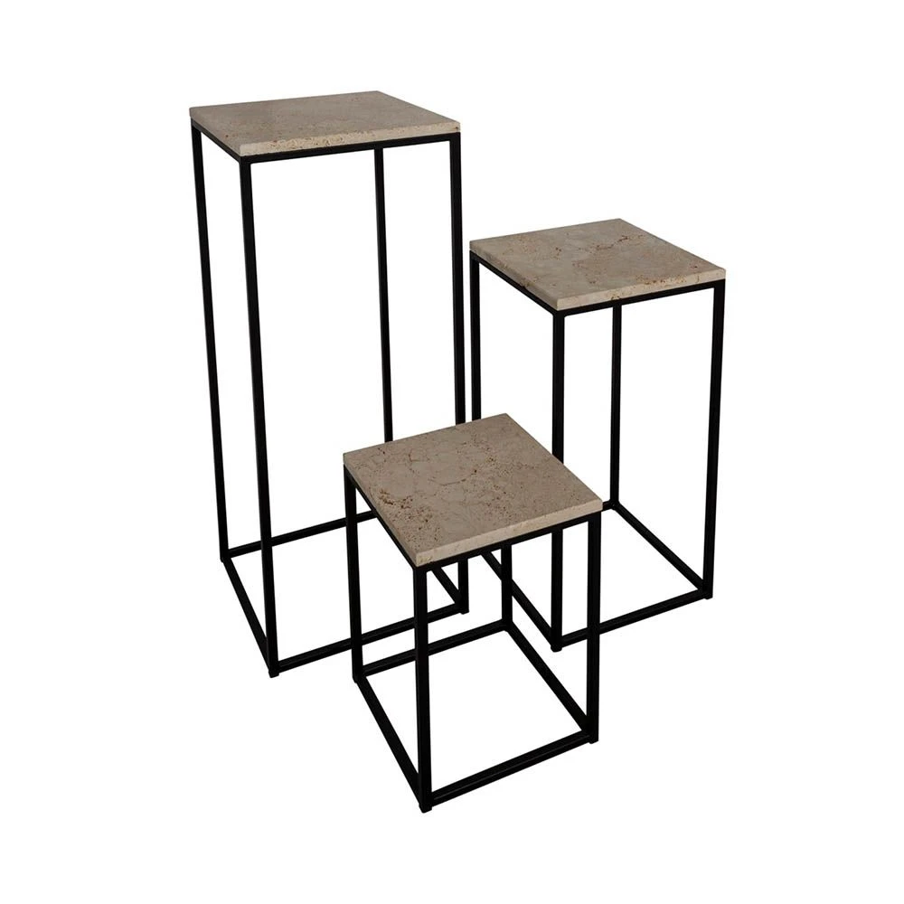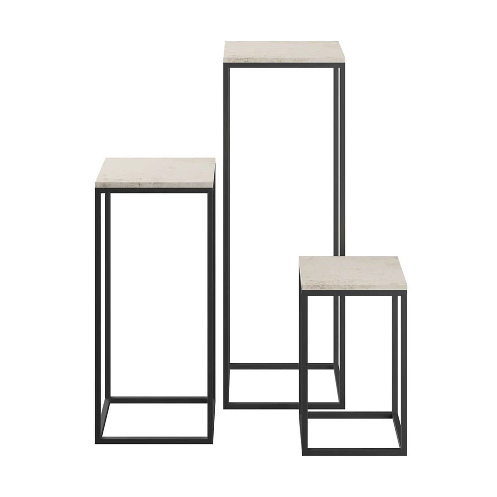 Perfect for a modern or minimalist decor, the Tempe Console Set features a three tier system with its sleek and slim profile. Crafted out of metal in a sleek travertine finish, this neutral piece adds a subtle level of luxury to any room.