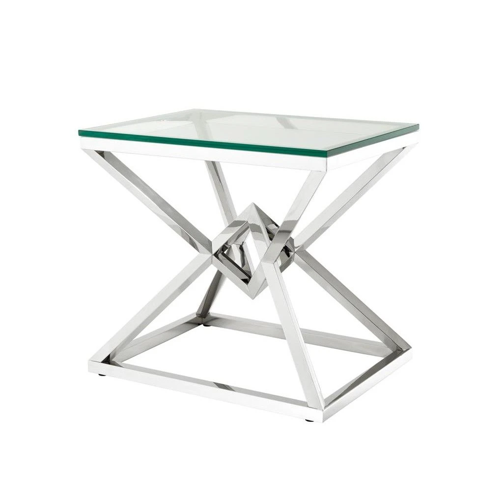Sharp lines, a sleek finish and a stylish design make this side table a timeless piece and fantastic addition to your collection. The angular base is fantastically paired with a clear glass top, retaining a contemporary feel. Match with the Eichholtz Console Table Connor to complete the look!