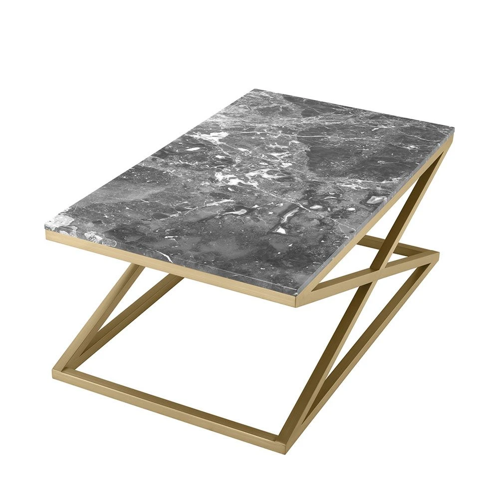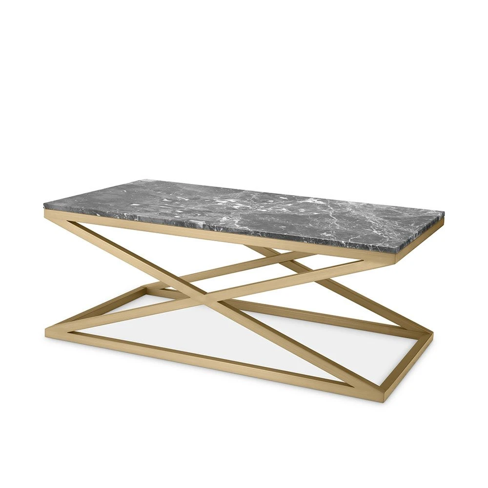 Grace your interiors with a touch of elegance with this striking cross-detail coffee table. The brass base exudes geometric appeal while the grey marble surface elevates the overall demure timelessness of the piece.