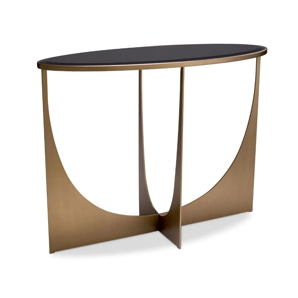 The Elegance Console Table boasts an impressive fusion of curved and geometric shapes to create a striking visual impact. The brushed brass finish highlights the table’s curves, while the bevelled black glass top adds a modern touch to its overall design. Combine with the Coffee Table Elegance and Side Table Elegance to create a space that is pleasing to the eye.