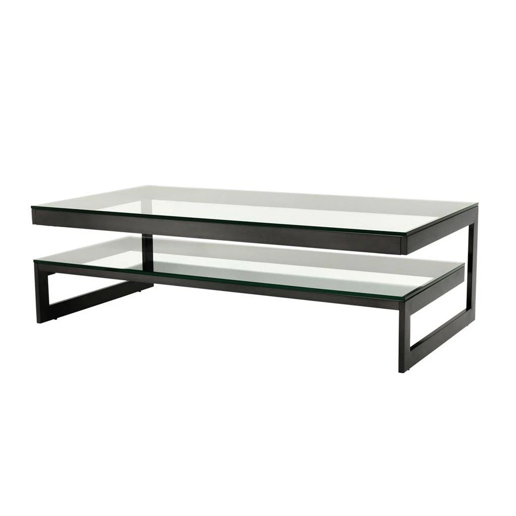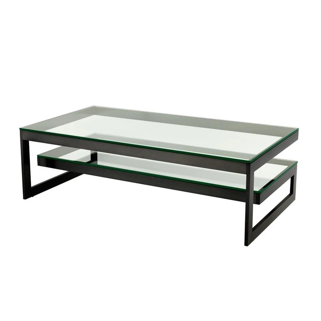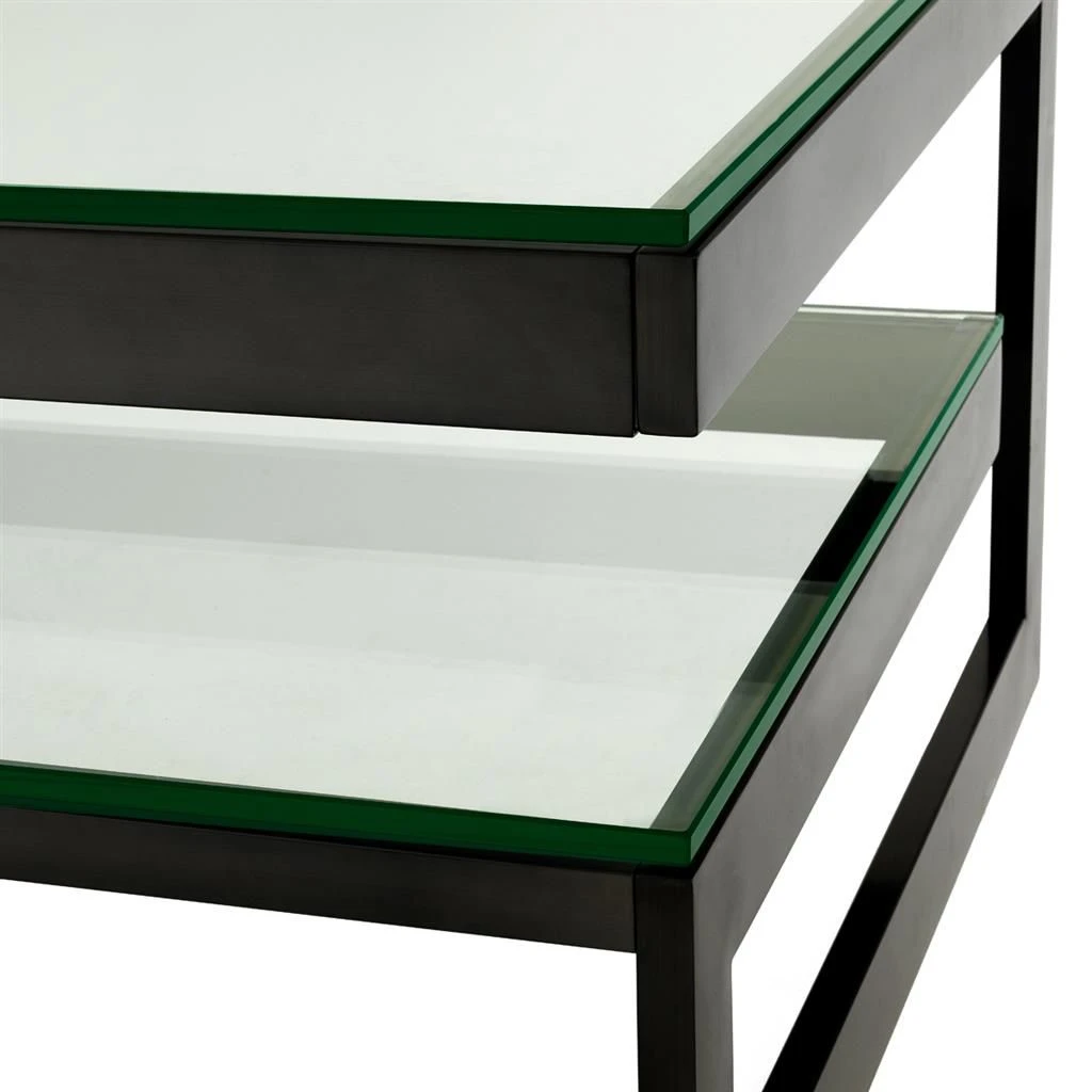 Angular and minimalist. The Gamma Console Table from Eichholtz is a gorgeous way to add a touch of glamour to your home. The matt black frame bends to form a floating glass shelf, mirroring its glass top, making it perfect for storing magazines or coffee table books.