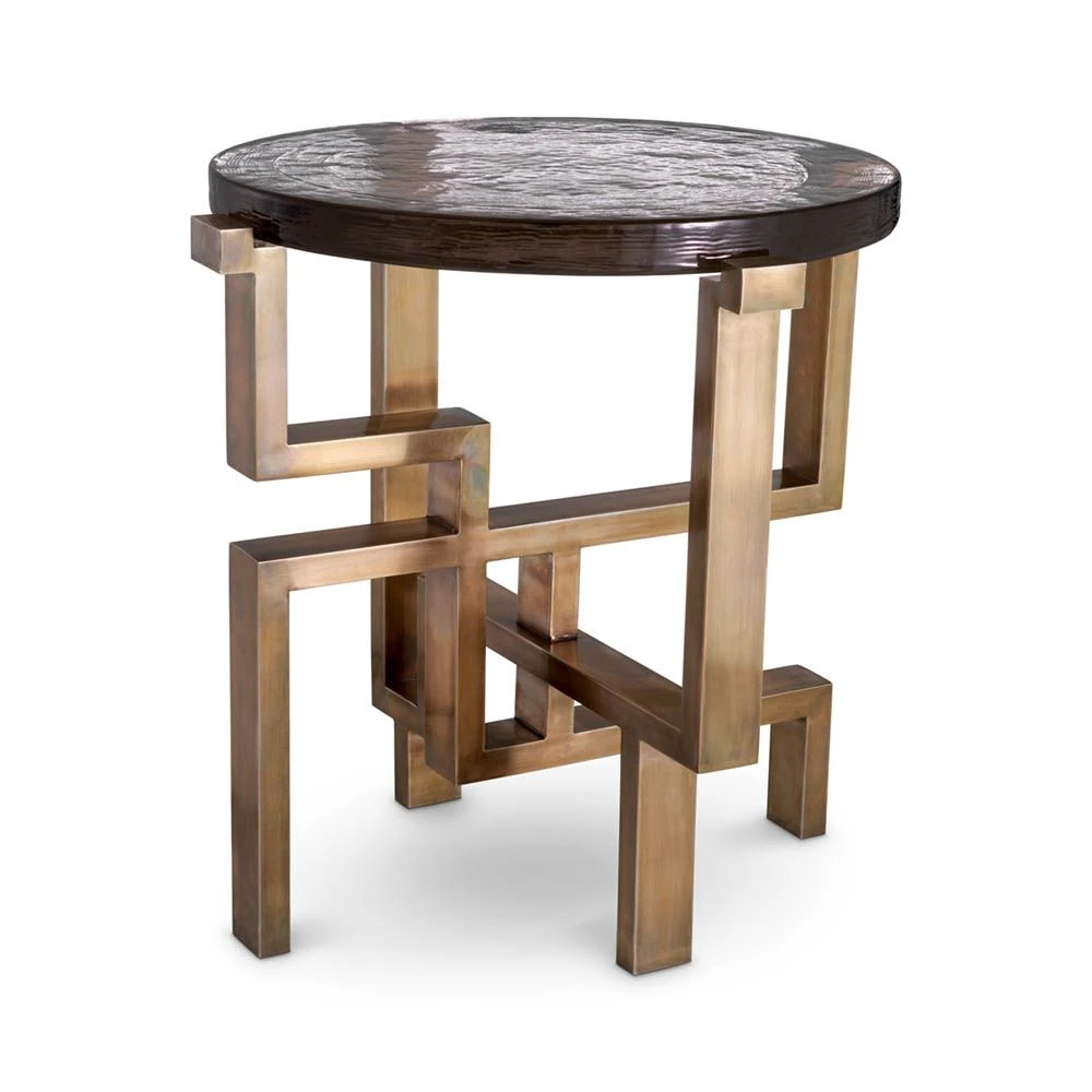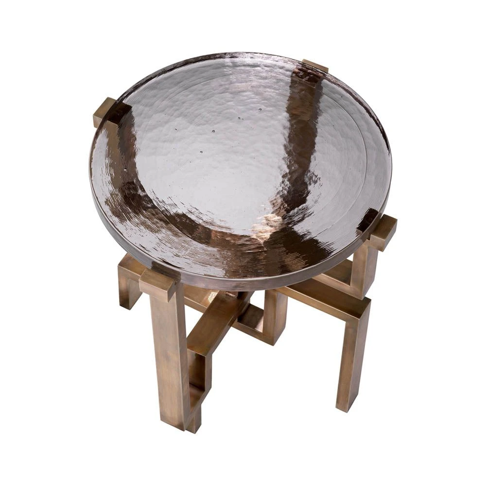 The Gee Side Table is an extraordinary creation that fuses vintage brass allure with a striking thick glass top that commands attention with its presence. This masterpiece is handcrafted, showcasing exquisite artistry and attention to detail. The side table will soon become a captivating addition to your space, blending sophistication and creativity to redefine the essence of style in your home.