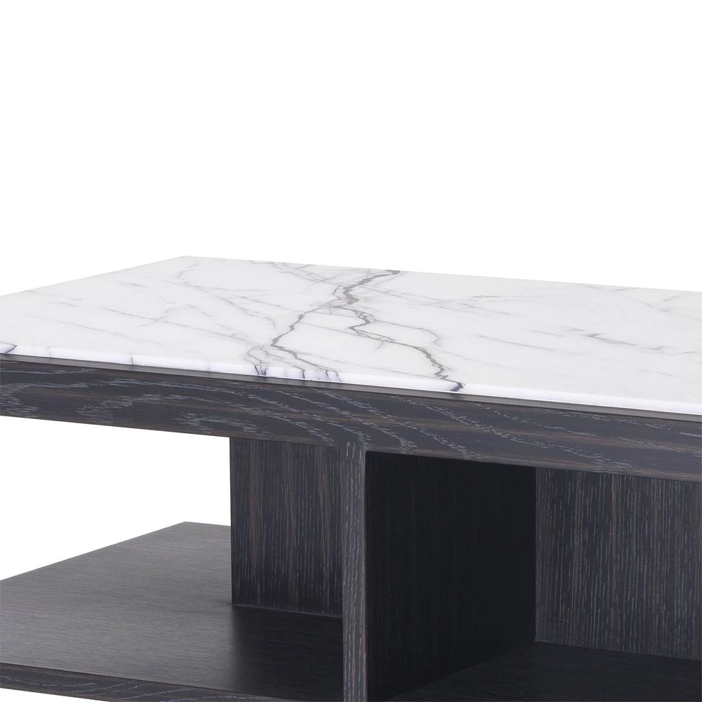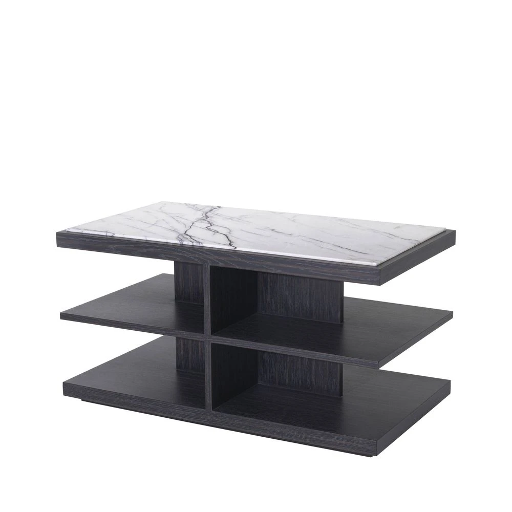 Adorn your home with the gorgeous Eichholtz Miguel Side Table. Its effortlessly sleek design offers you multiple shelving for extra storage every household needs, finished in a charming, charcoal grey oak veneer with a bianco lilac marble surface.