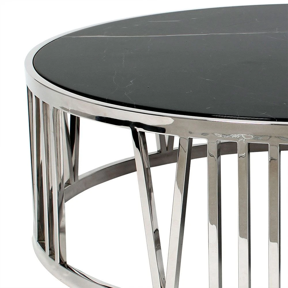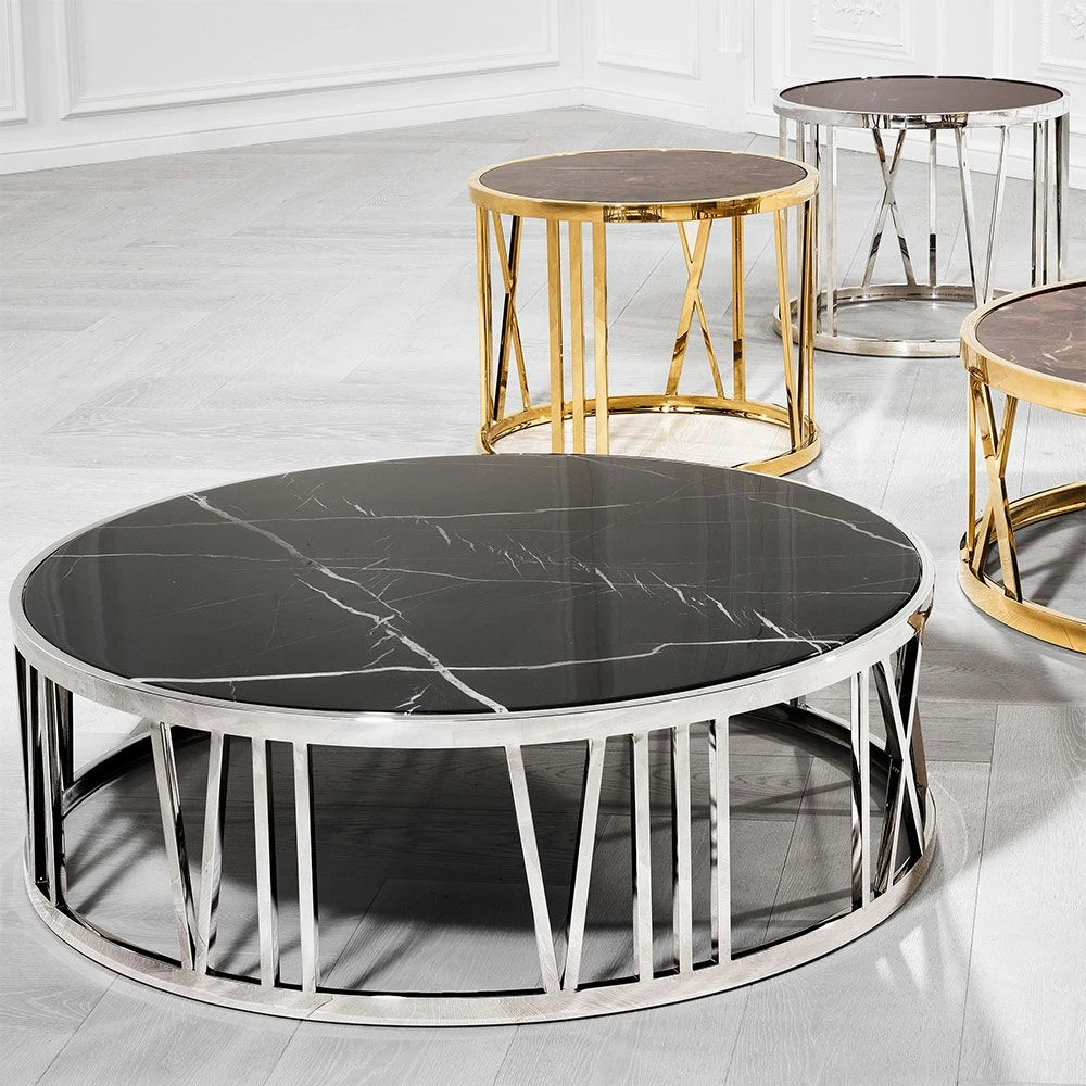 Timeless yet numerical, this striking piece embraces an enchanting design with a nickel base comprised of Roman Numerals. The black marble tabletop effortlessly elevates the overall luxe sophistication of this coffee table.