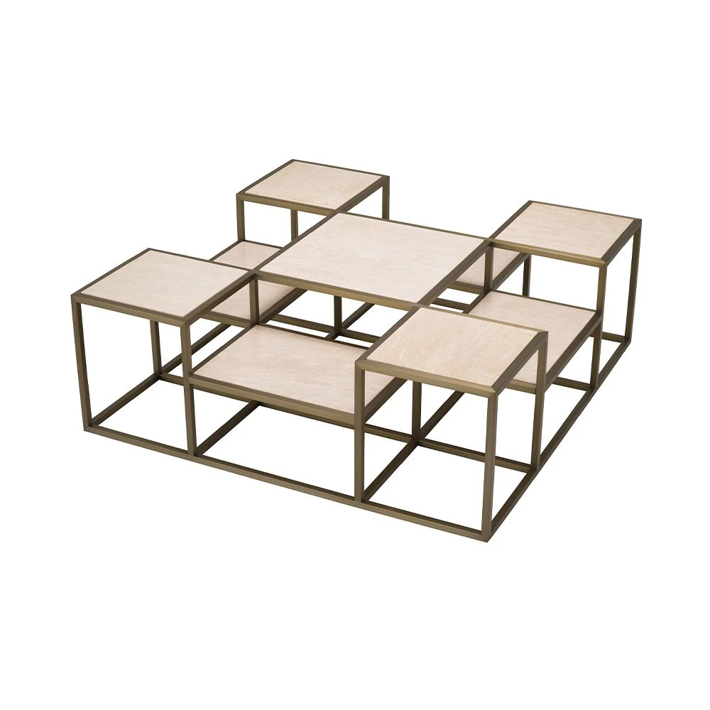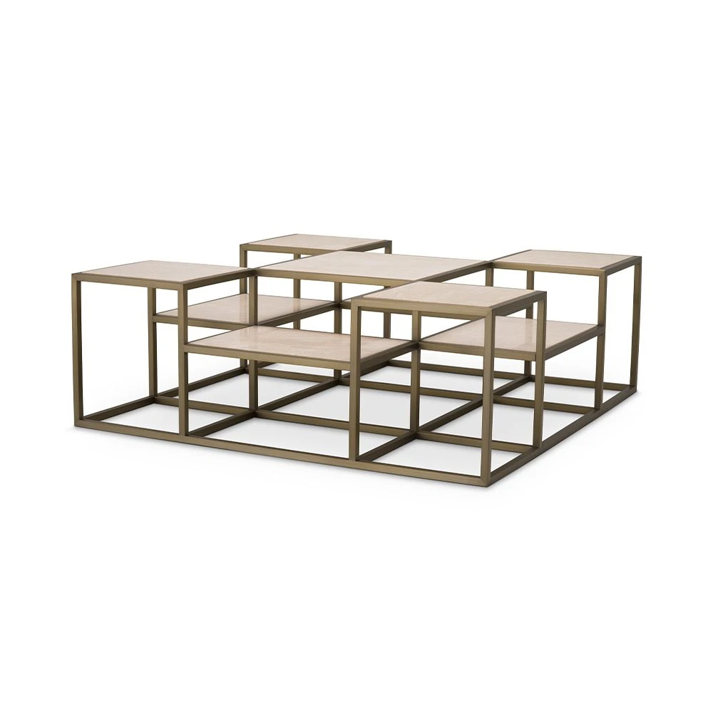 The sculptural and stylish, Smythson Coffee Table by Eichholtz is the perfect piece for making a statement in your living area. It has been crafted with meticulous care and has a beautiful brushed brass finish. The tables have on-trend travertine tops that will look opulent in any interior space. Let this show stopping piece transform your home with its contemporary appeal.
