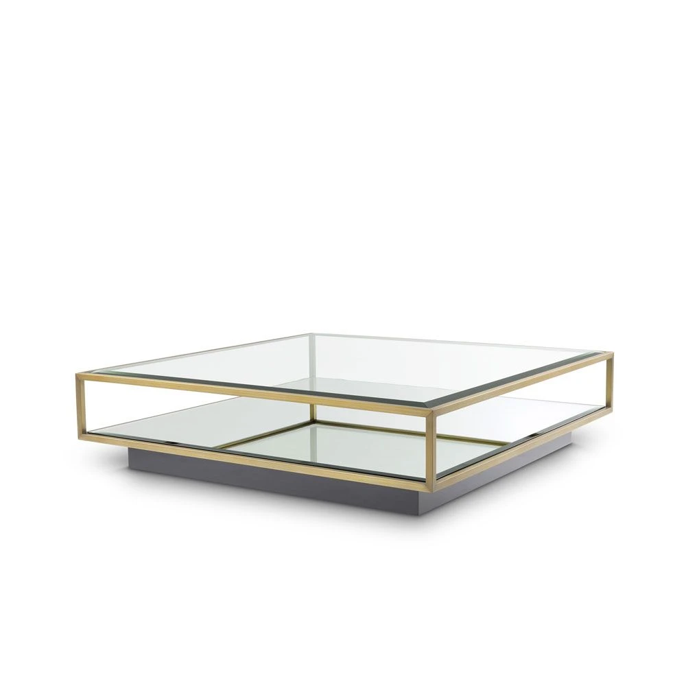The gorgeous Tortona Coffee Table comes in a sophisticated brushed brass finish; a design that will enrich your home with a sense of modern glamour which maintaining a minimalist aesthetic. The lower shelf is made of mirror glass while the tabletop surface is transparent glass.