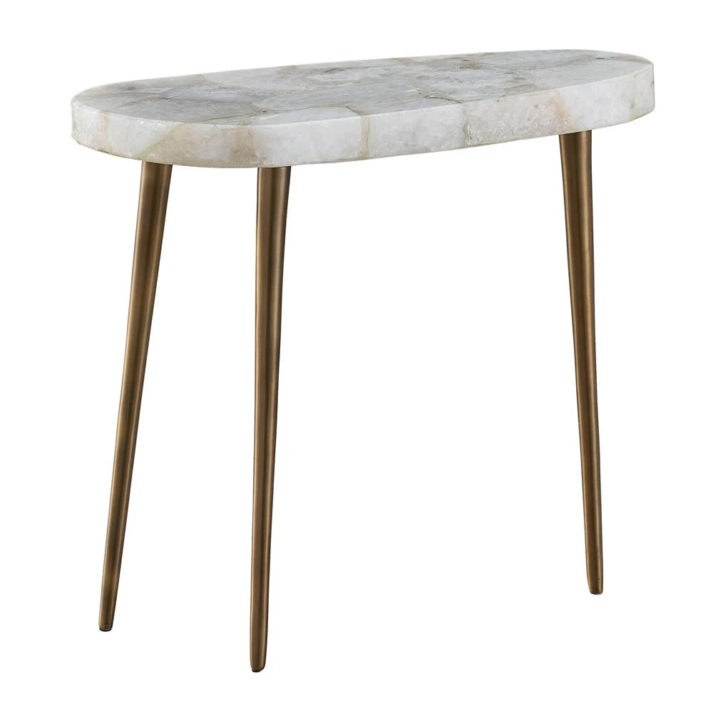 Infuse your space with an elemantal elegance with the Fino Side Tables. An intricate agate top is offset by its sleek antique satin brass legs, bringing an opulent charm to any interior..