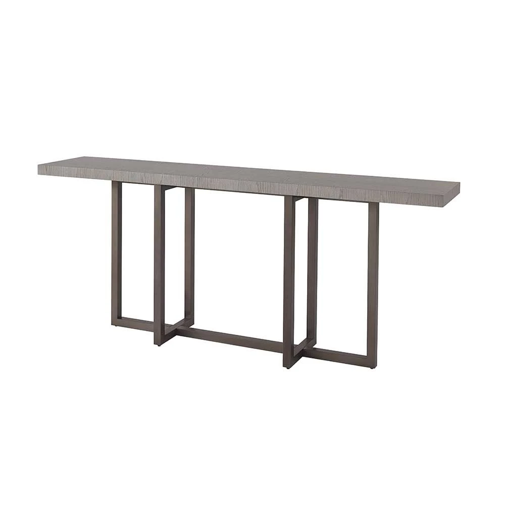 Eye-catching and inspired, the Huston Console Table brings an immediate sense of visual enrichment to any space with its long-yet-narrow Siltstone-finished table top offset by a boldly angled metal base.