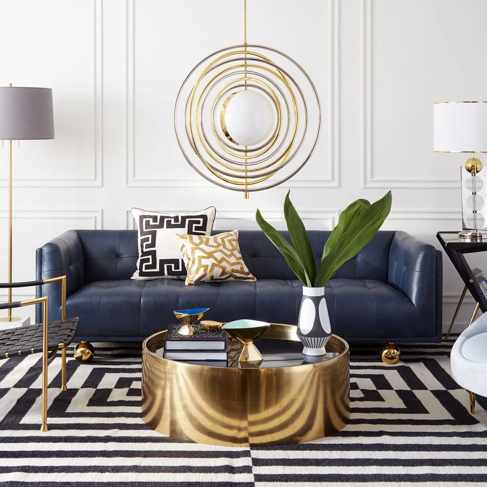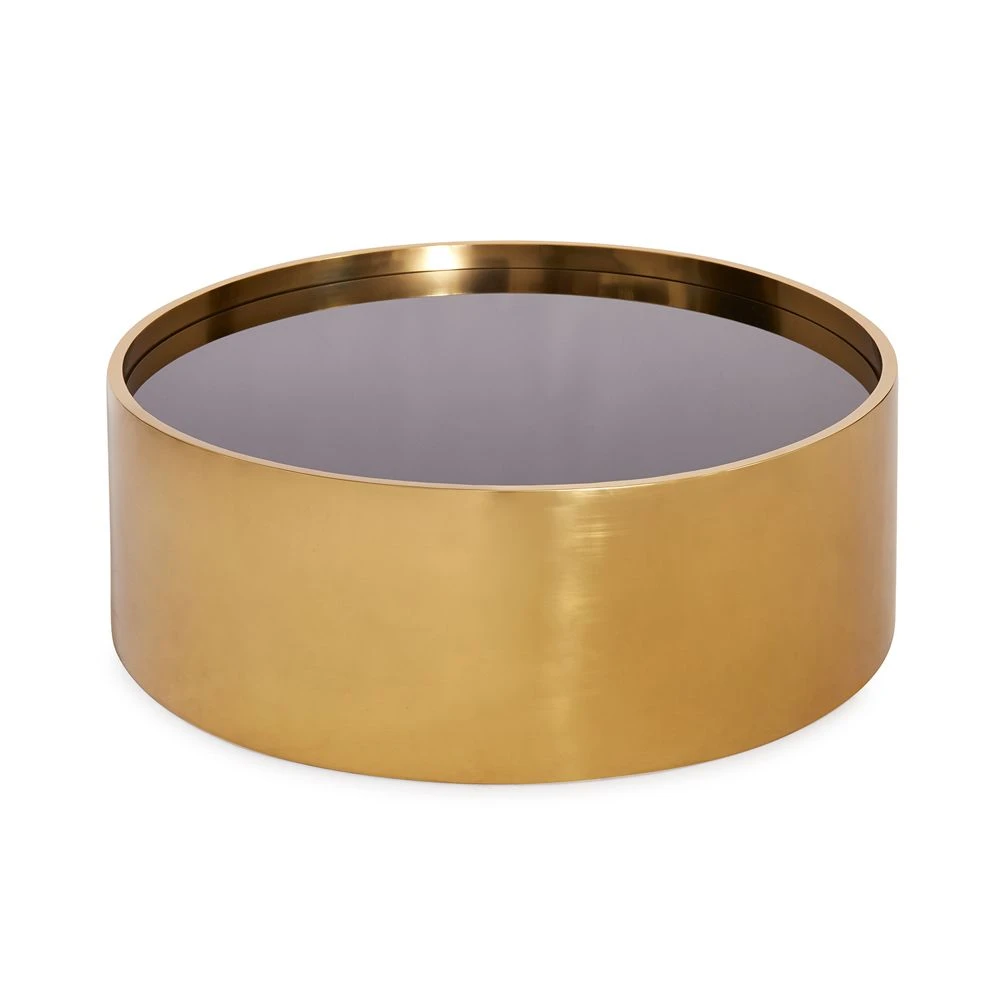 Minimalist and modern, the Alphaville Cocktail Table comes in honed brass with a black surface. The simple drum shape is a solid anchor for any room, while the reflective tabletop keeps the space feeling light and glamorous.