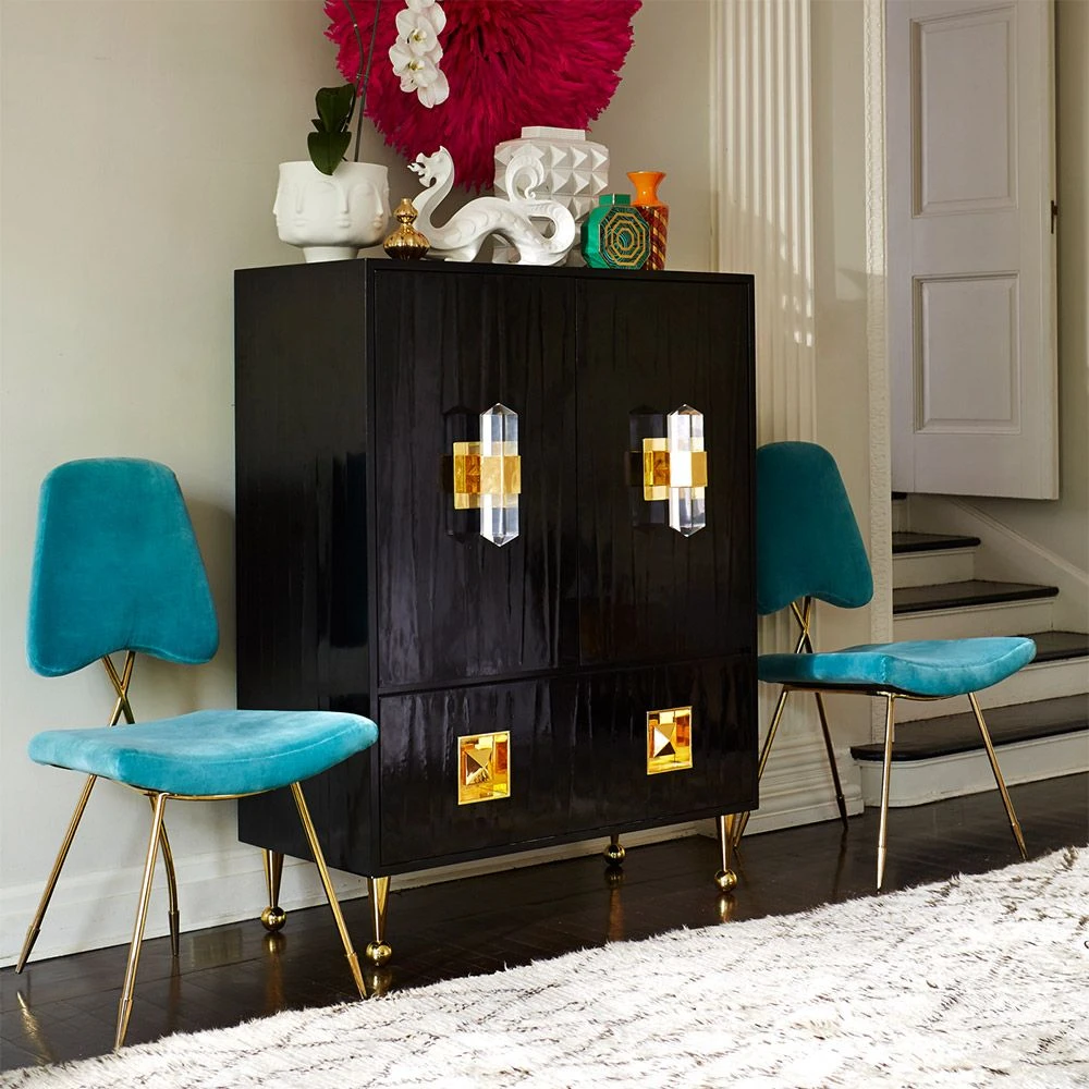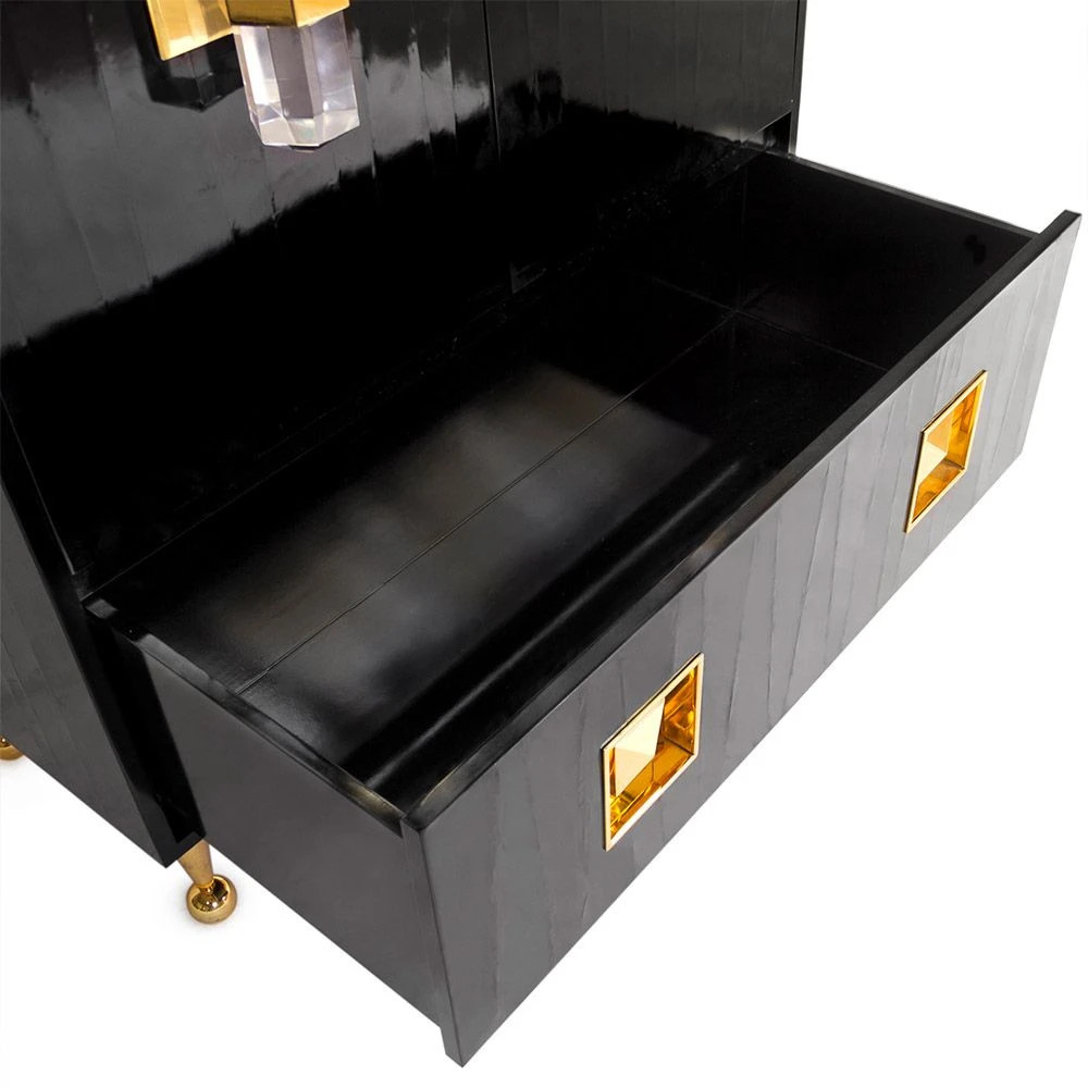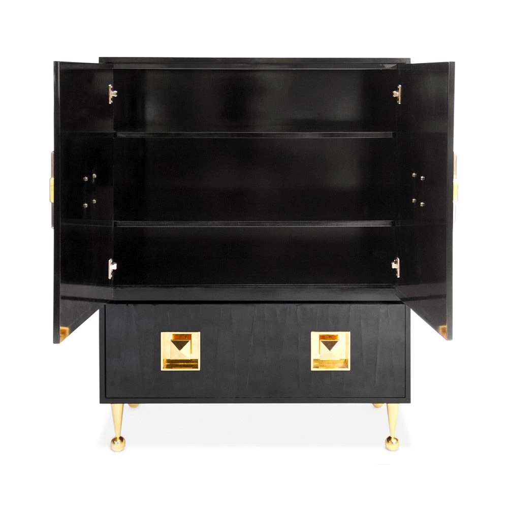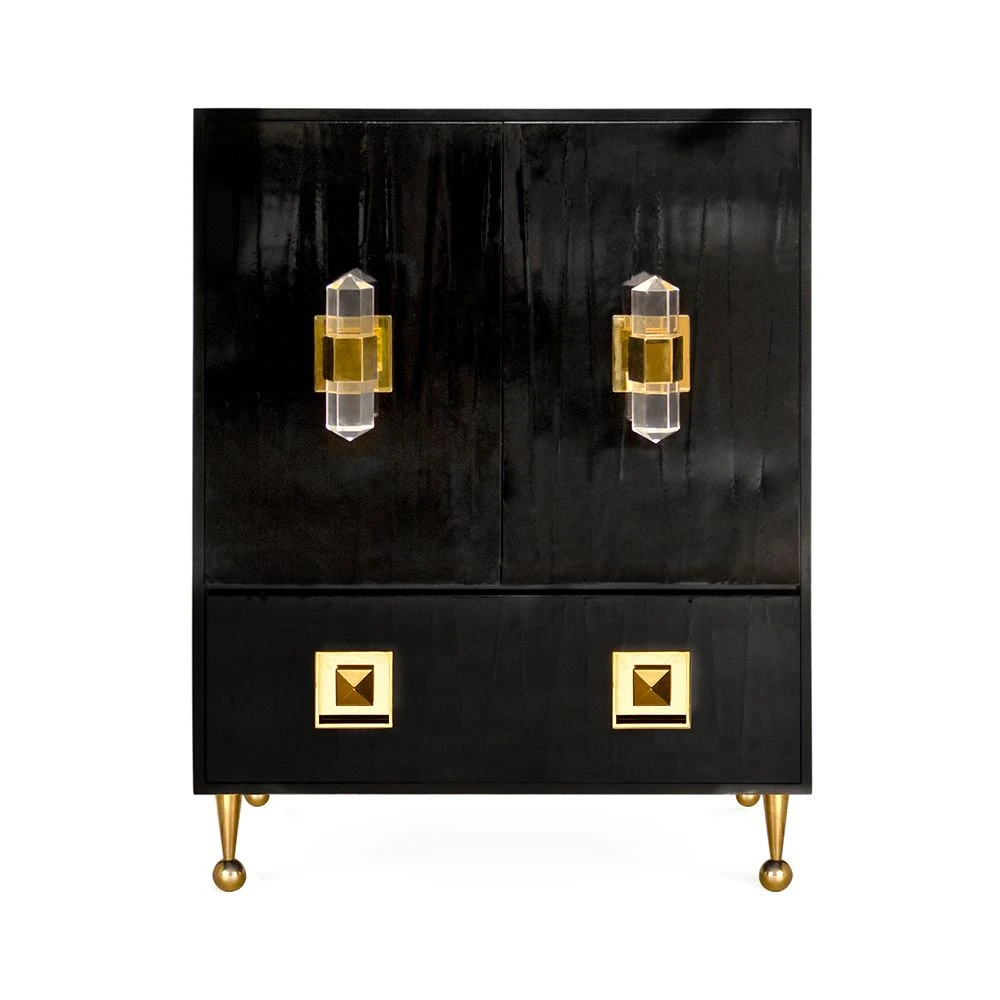 Bring a touch of timeless Hollywood glamour to your home with the Crawford Cabinet! The glossy, black lacquer and polished brass and acrylic detail create a luxurious piece that will add instant charm to any part of your home.