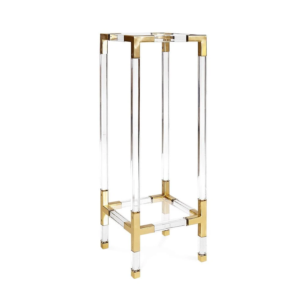 Made from luxe clear acrylic with brushed brass and fitted with a low glass shelf, the Jacques Pedestal is the perfect blend of traditional glamour and modern simplicity. Pedestals are every professional decorator’s secret weapon—the finishing touch you don’t realize you need. Add a beautiful vase or eye-catching bust and utterly transform your living space.