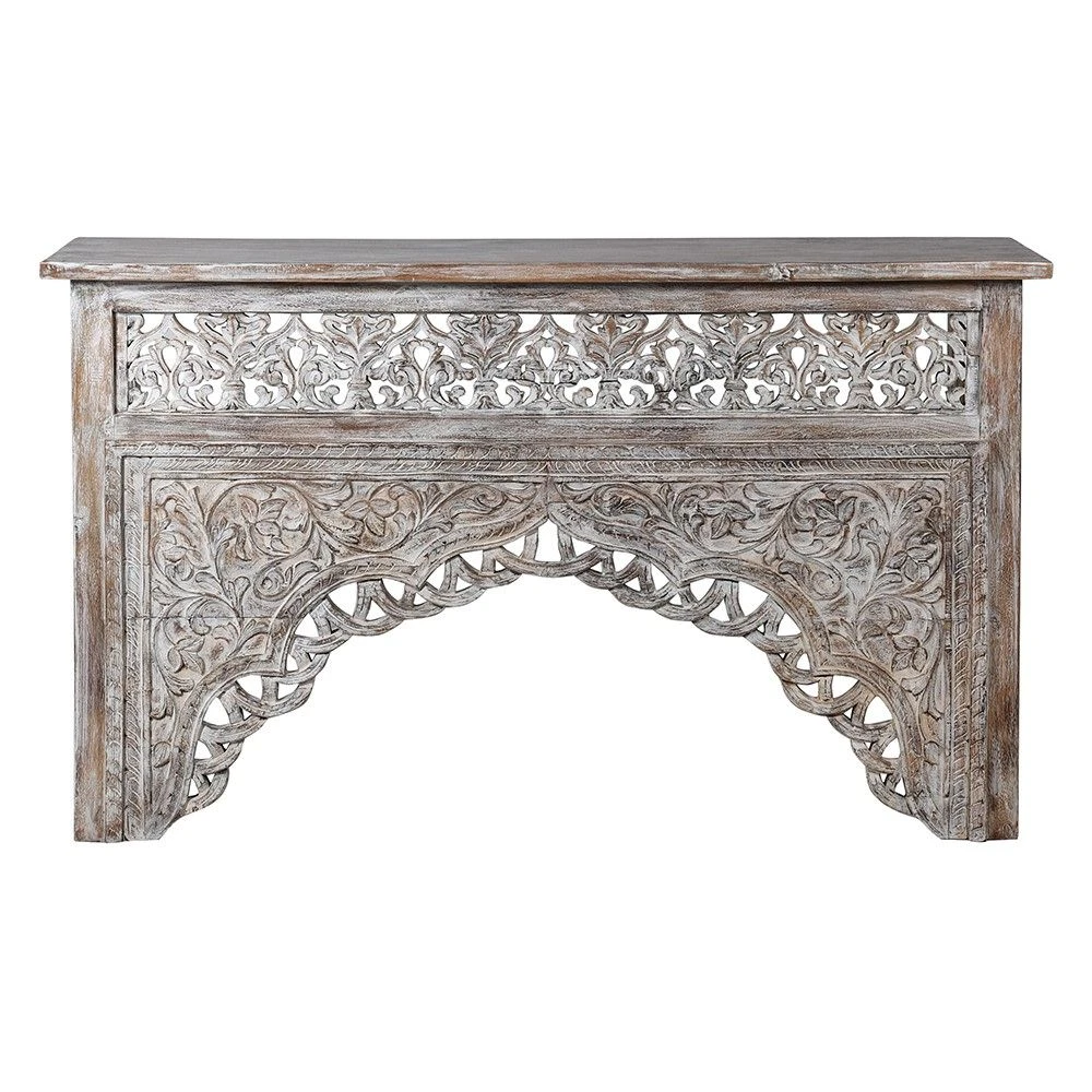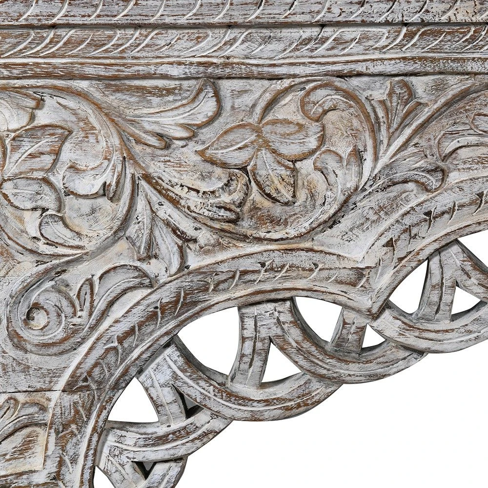 Elegance meets vintage with the Lazuli Wooden Cabinet. Intricately carved out of mango wood, this unique piece creates a sophisticated addition to any hallway or living space, perfect for displaying your ornaments and decorative pieces.