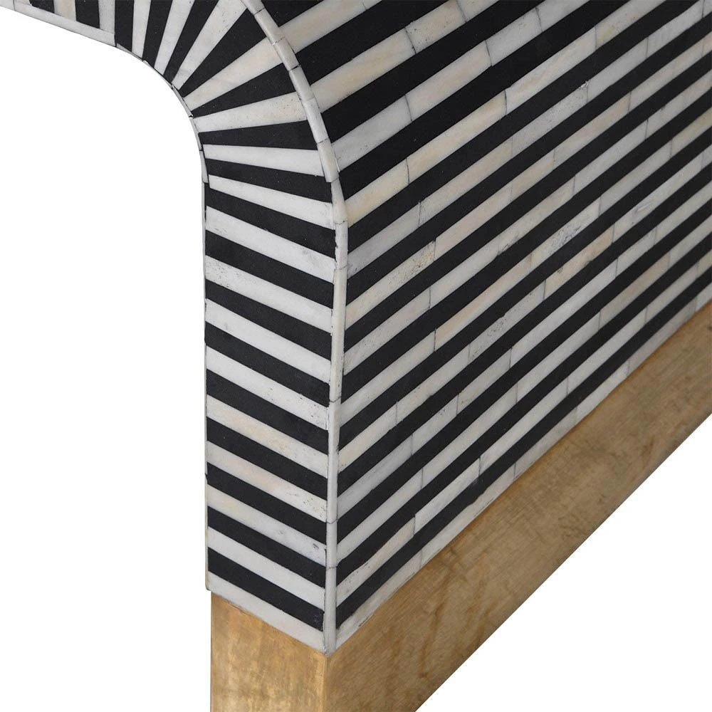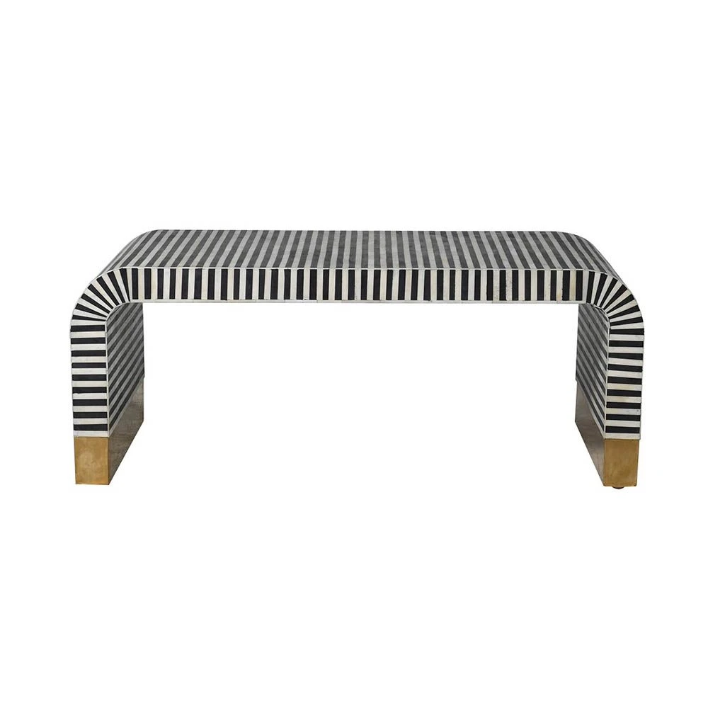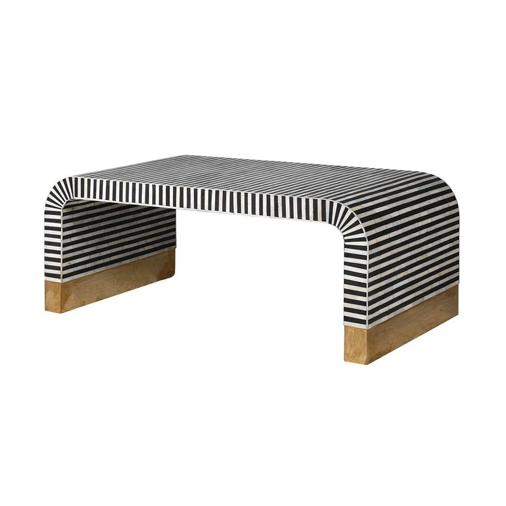 Anchor your living room with a ravishing sense of style with this opulent statement coffee table. Featuring a monochromatic bone inlay design with wood detailing on the feet, this piece is sure to be a scene stealer in your living room while offering a sense of elegant and tasteful sophistication.