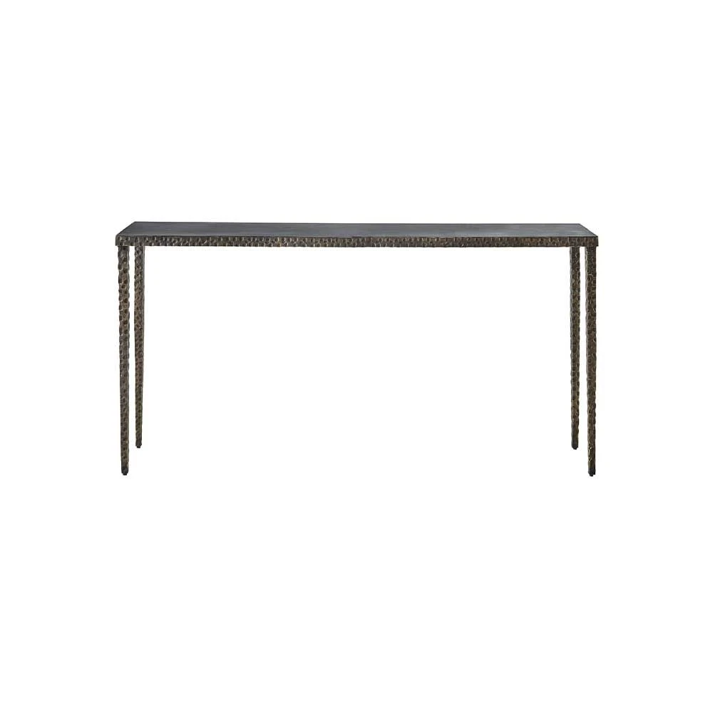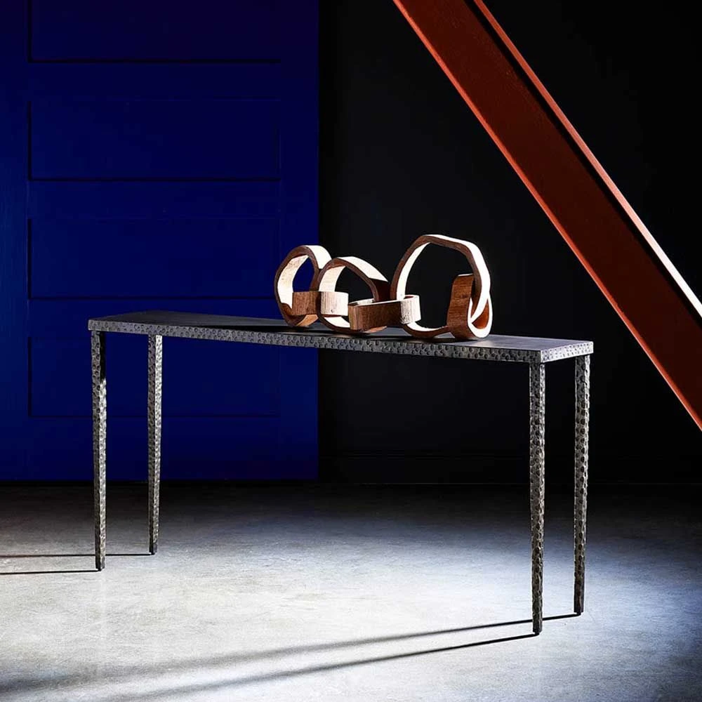A sleek silhouette and a unique hammering detail define the Minimalist Console, a refined furnishing made richer by a matte metal finish.