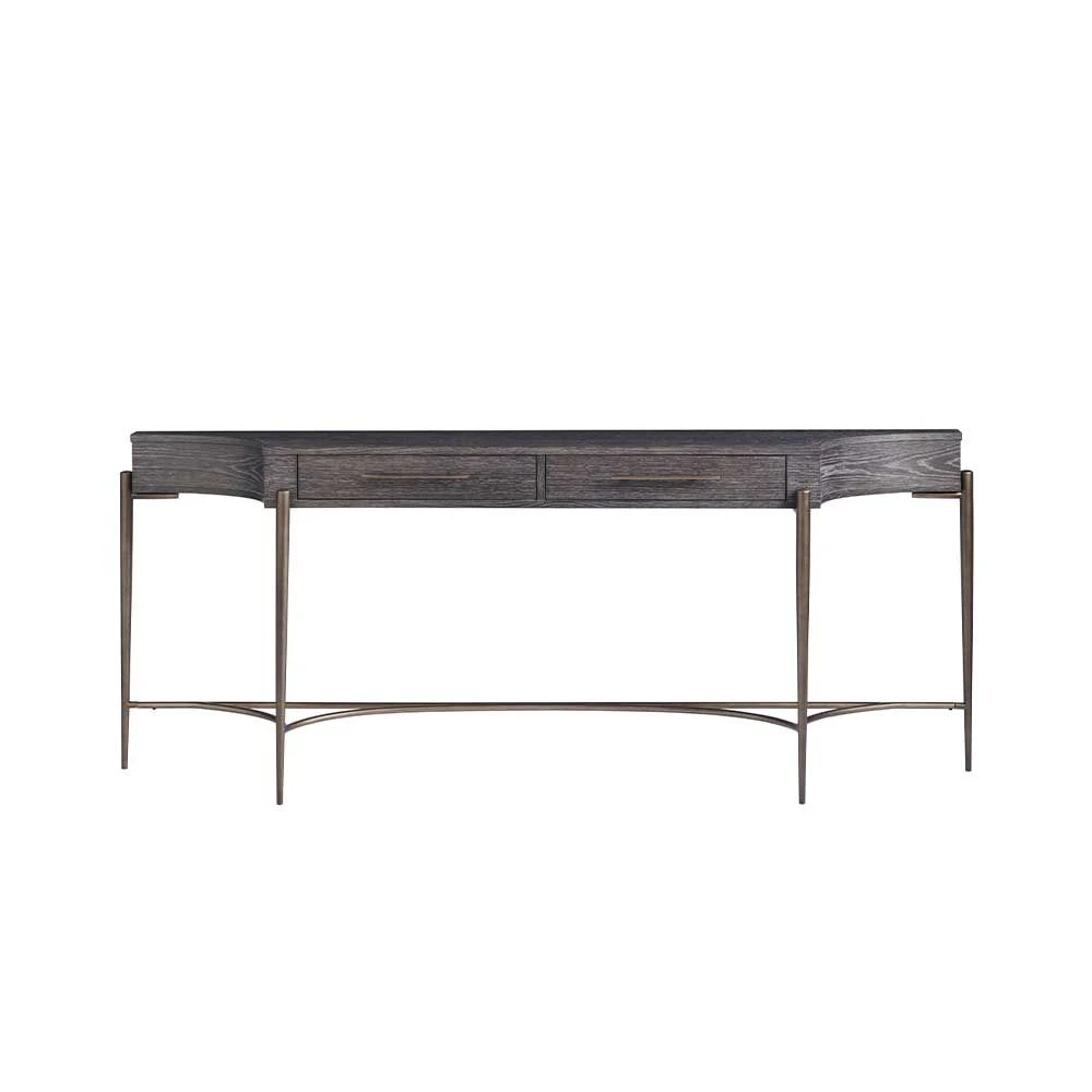 The Oslo Console Table introduces an airy, mid-century aesthetic into spaces, featuring a long, narrow body supported by tall, stately bronzed legs.