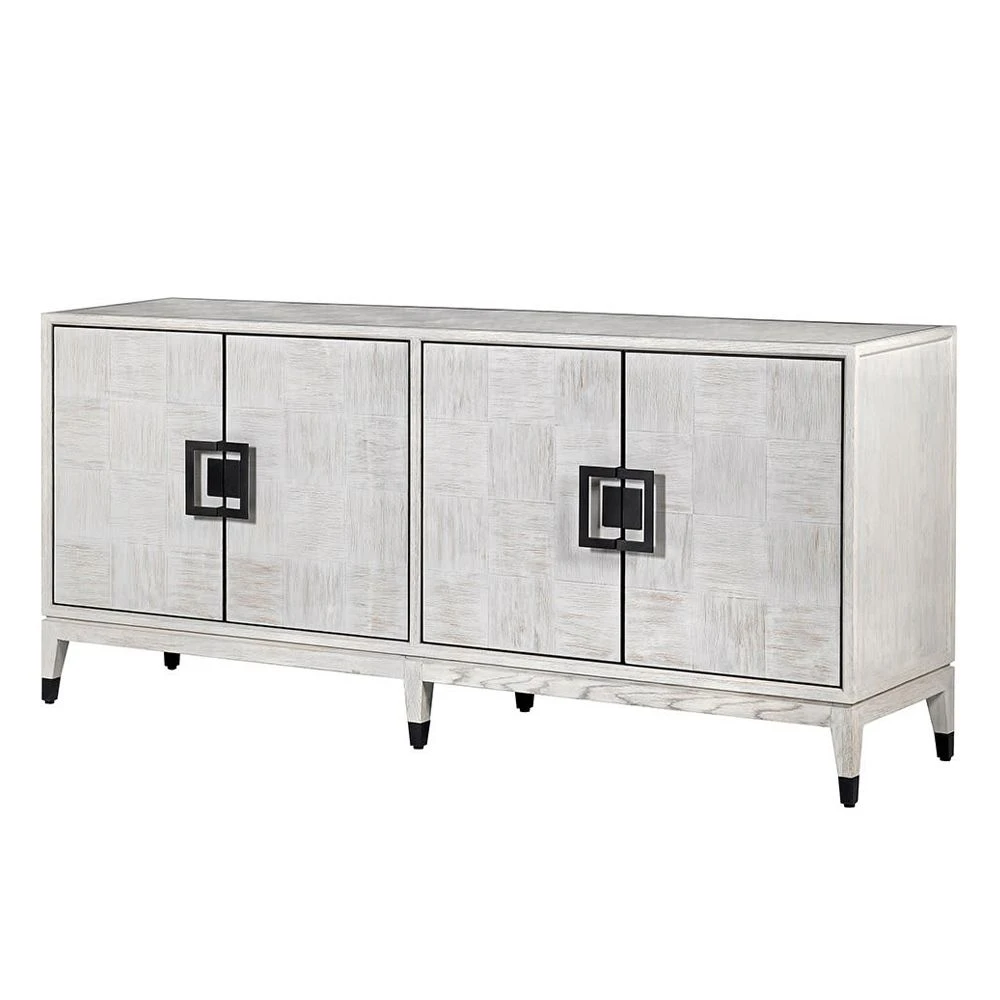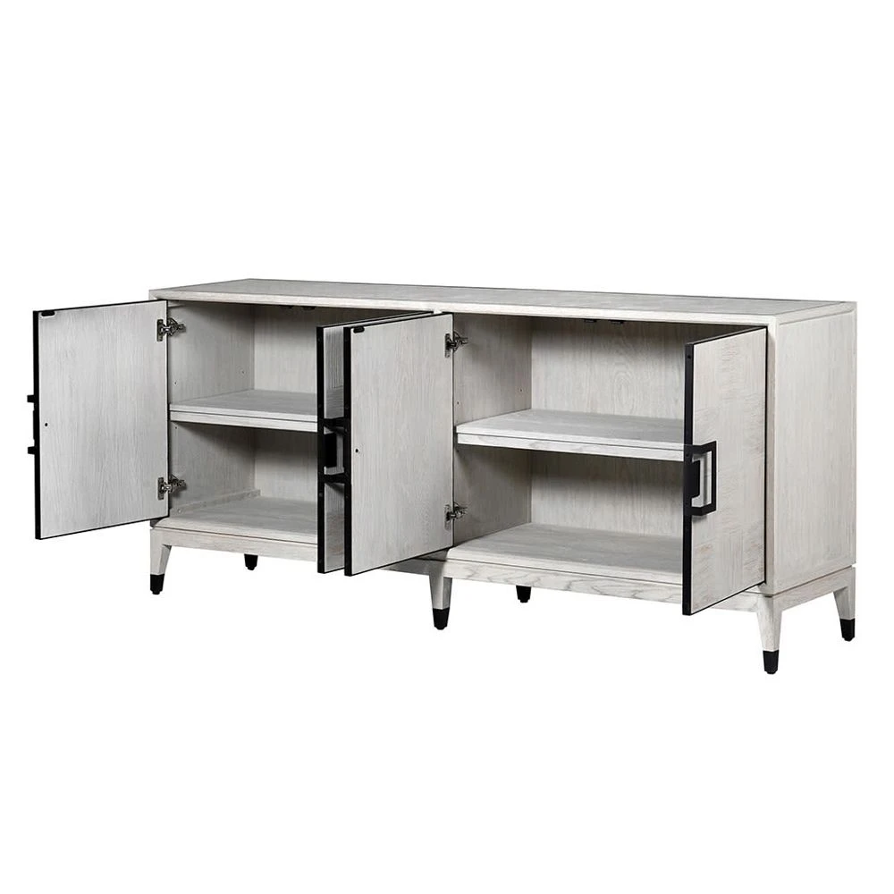 Upgrade your entryway, dining room or living space with the alluring Pascal Sideboard. Inspired by retro modernist style with a contemporary twist, the Pascal Sideboard features an oak inlay effect in a whitewash finish, providing ample storage with two large compartments and two adjustable shelves.