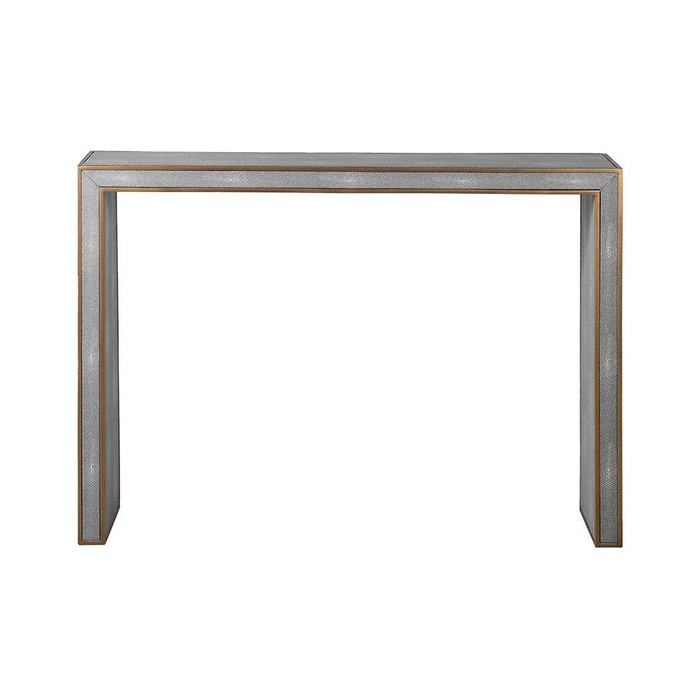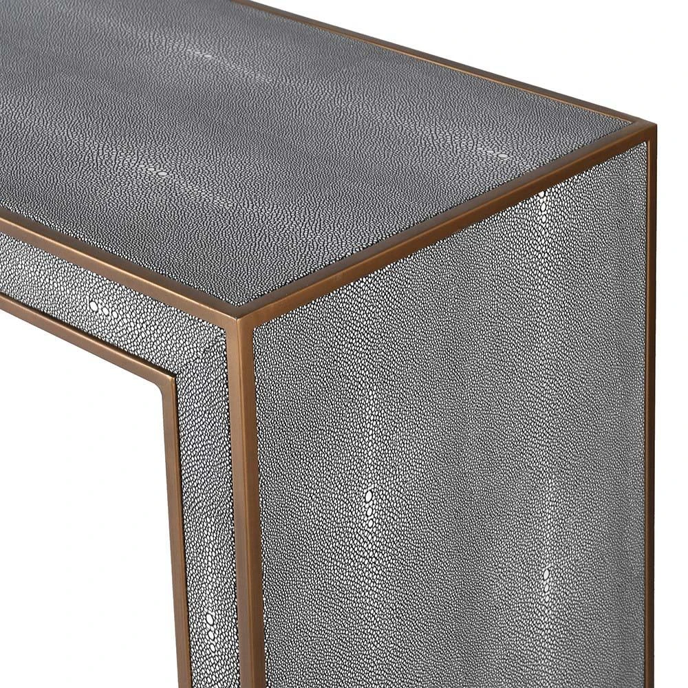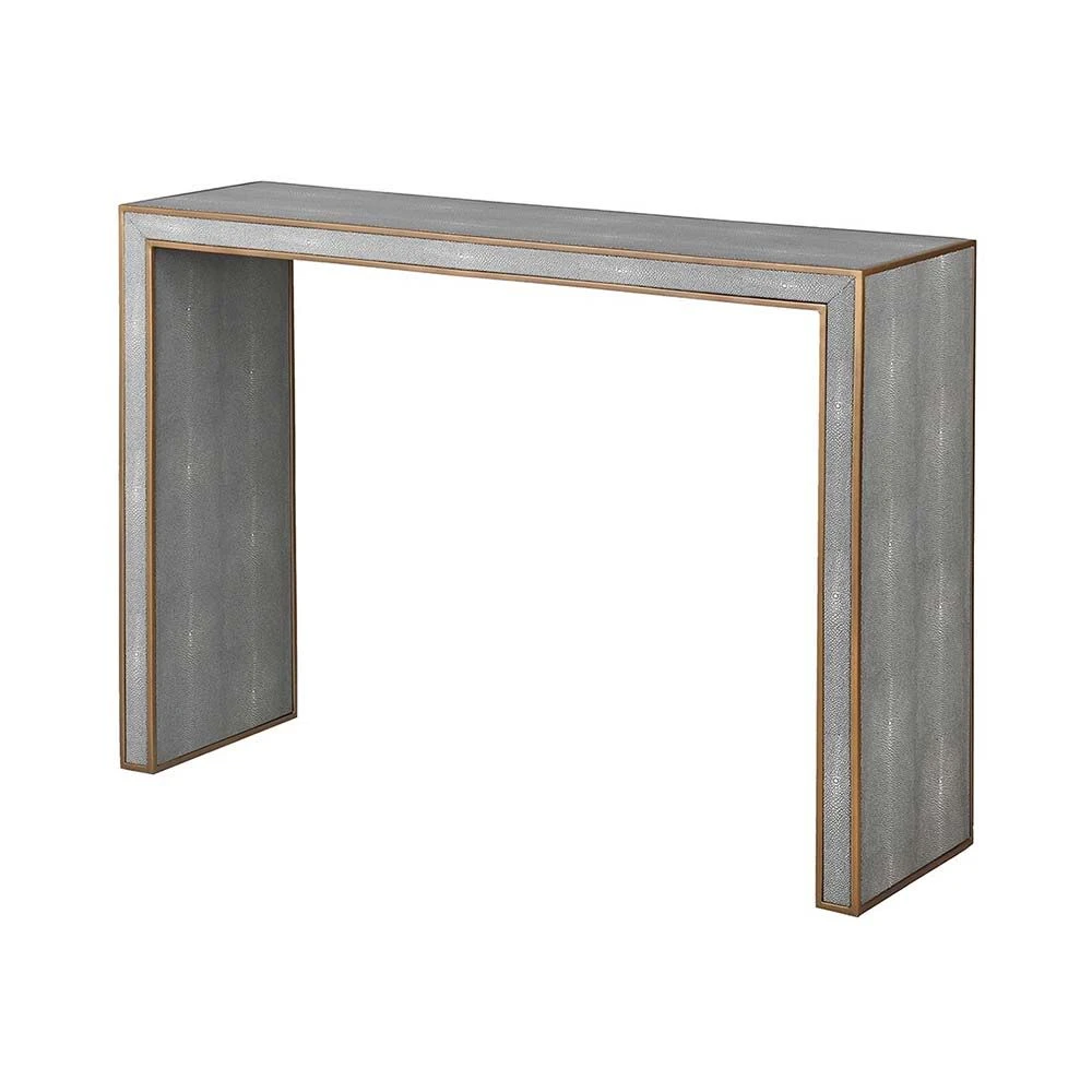 Simplicity is the key to the beauty of the Pearson Waterfall Console Table. Its exquisite shagreen finish is complemented beautifully by the brass detailing around the edge, making this piece a subtle yet glamorous addition to any hallway or living area.