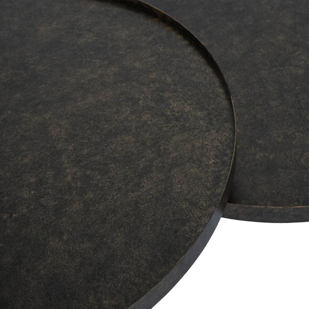 In a stunning set of two, these nesting coffee tables are perfect for all sorts of spaces. Crafted from Antique Bronze and Rustic Gold finishes and formed with traditional craftsmanship techniques, this piece is the ideal harmony between the natural world and contemporary interiors.