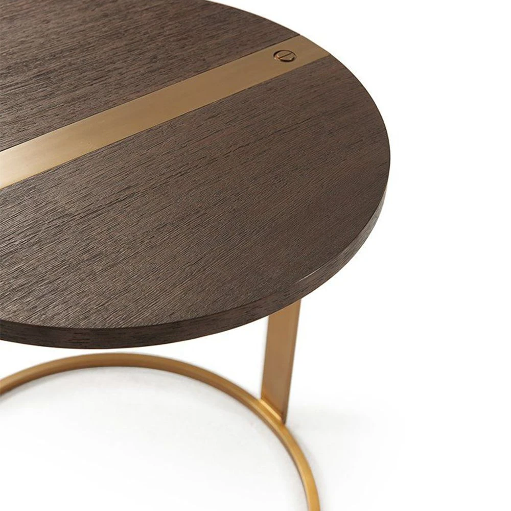 Complete your living room furnishings with the enchanting round Aria Side Table. This piece offers a deeply rich texture complimented by its glamourous brushed brass accents. Its gorgeously simple design is inspired by the modern style making it a tasteful stand-alone piece with or without any additional ornaments.