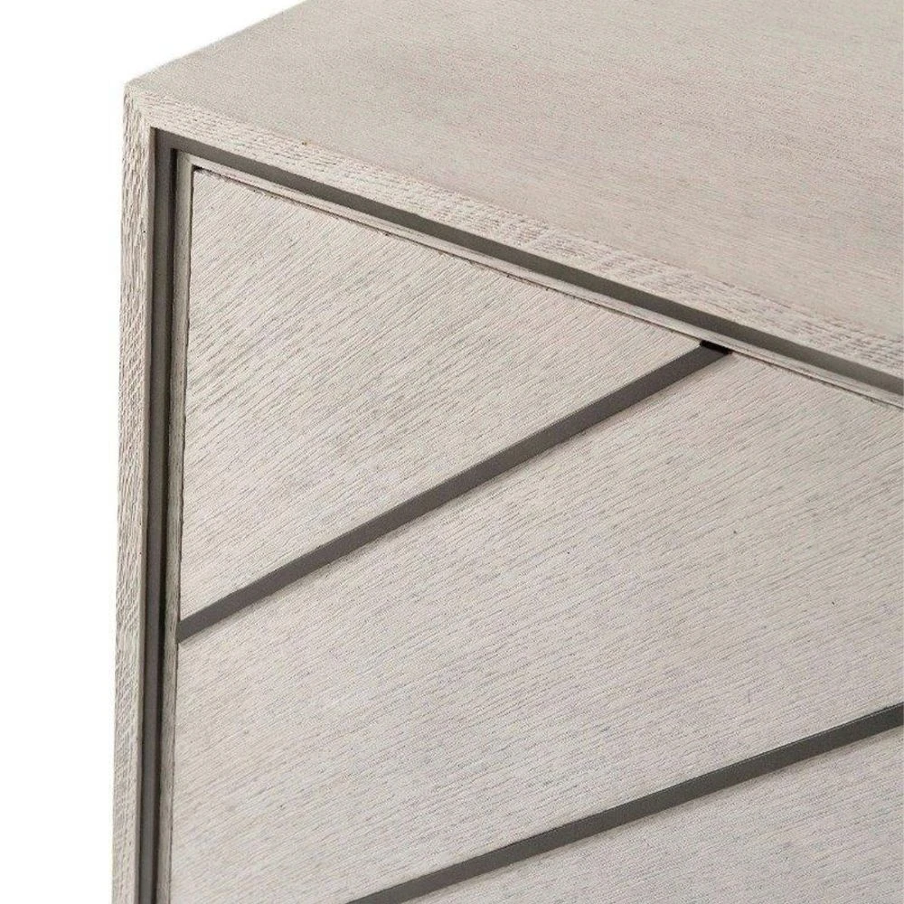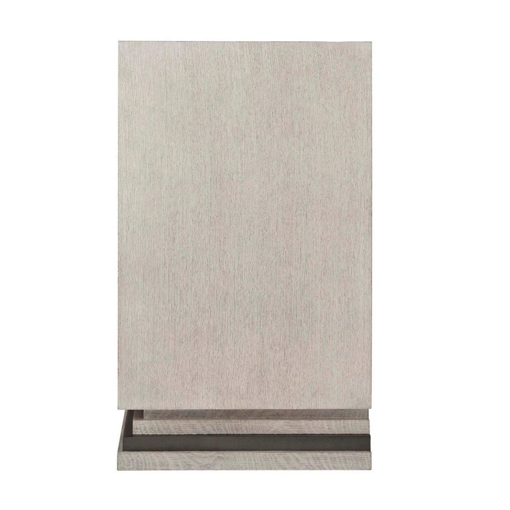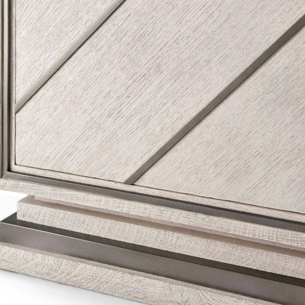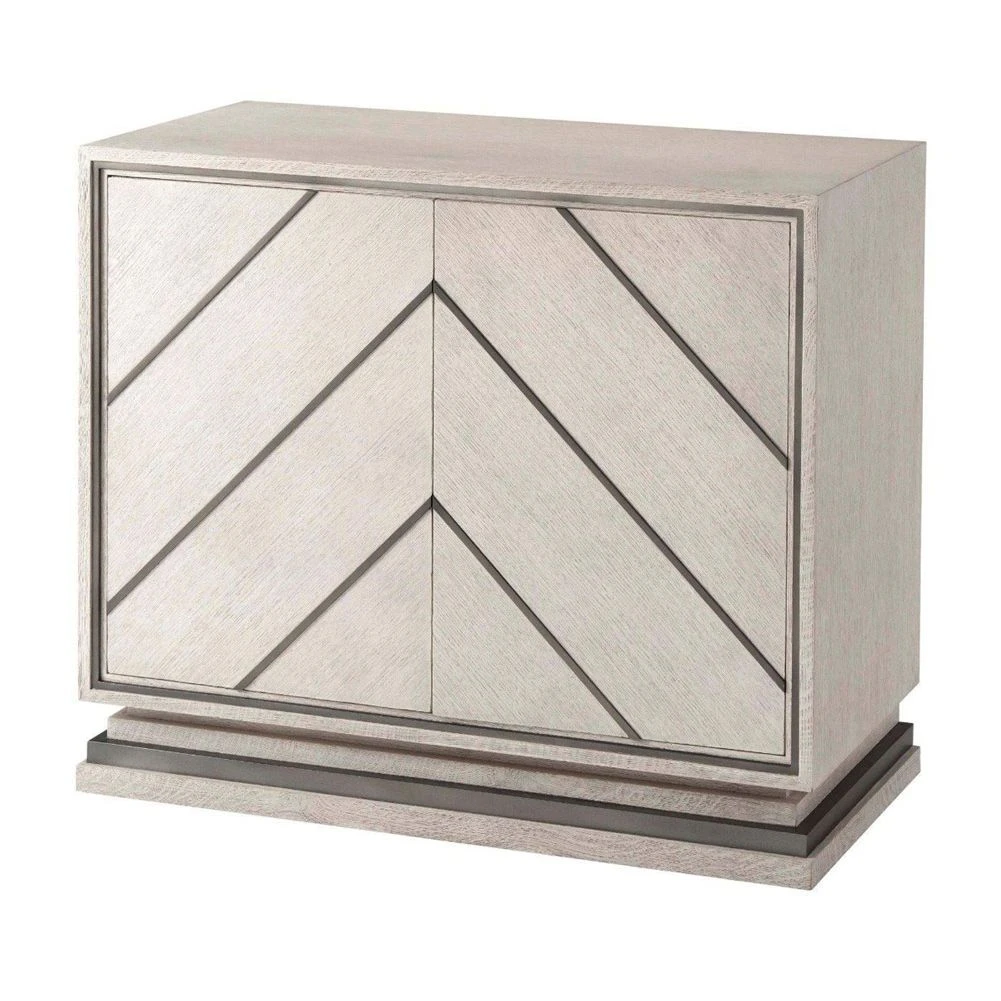 Furnish your space with this enticing, modern-style Nino cabinet. This piece comes in a gorgeous light finish with a contrasting metal overlay on the doors for a sleek and geometric appeal. The cabinet is mounted on an alluring stepped base and contains two shelves for plenty of essential storage, making it a stunning and sophisticated piece, suited for many interior styles.