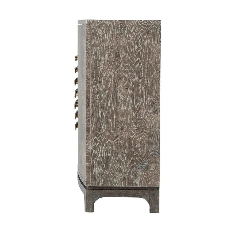Enrich your decor with this resplendent Orson Cabinet. Its eye-catching textured brass handles serve as an ornate and artistic detail, mounted on the exquisite, aged oak veneer doors to create a striking and elegant cabinet. This piece also harbours two divided sections, complete with adjustable shelves to suit your particular storage needs, making it as functional as it is fabulous.