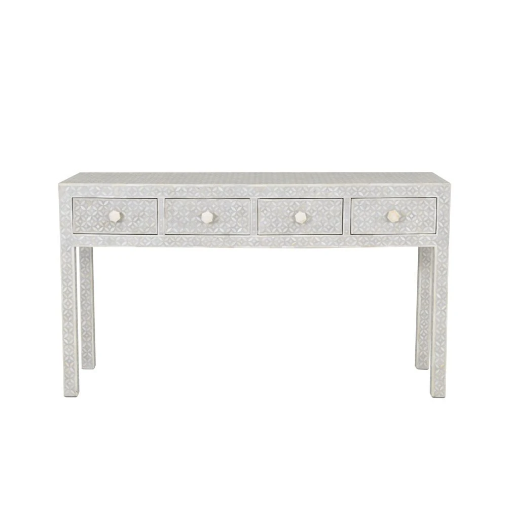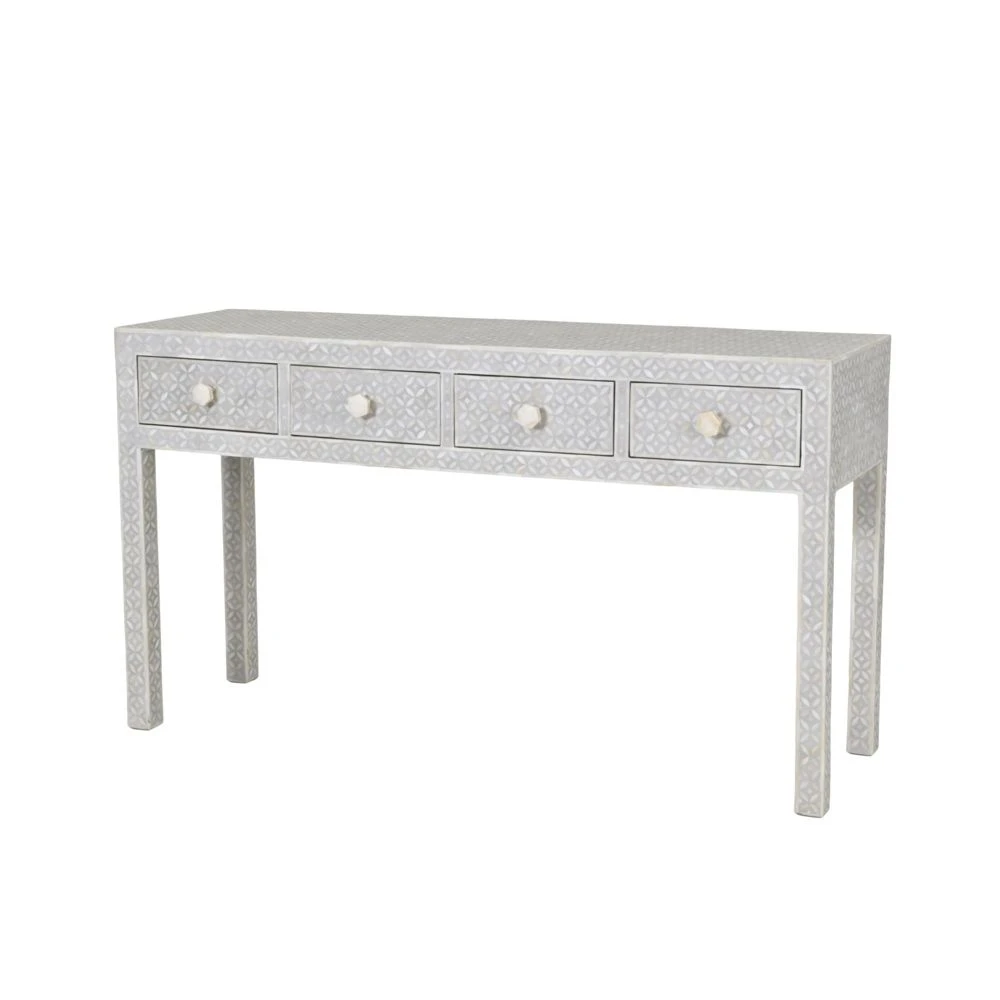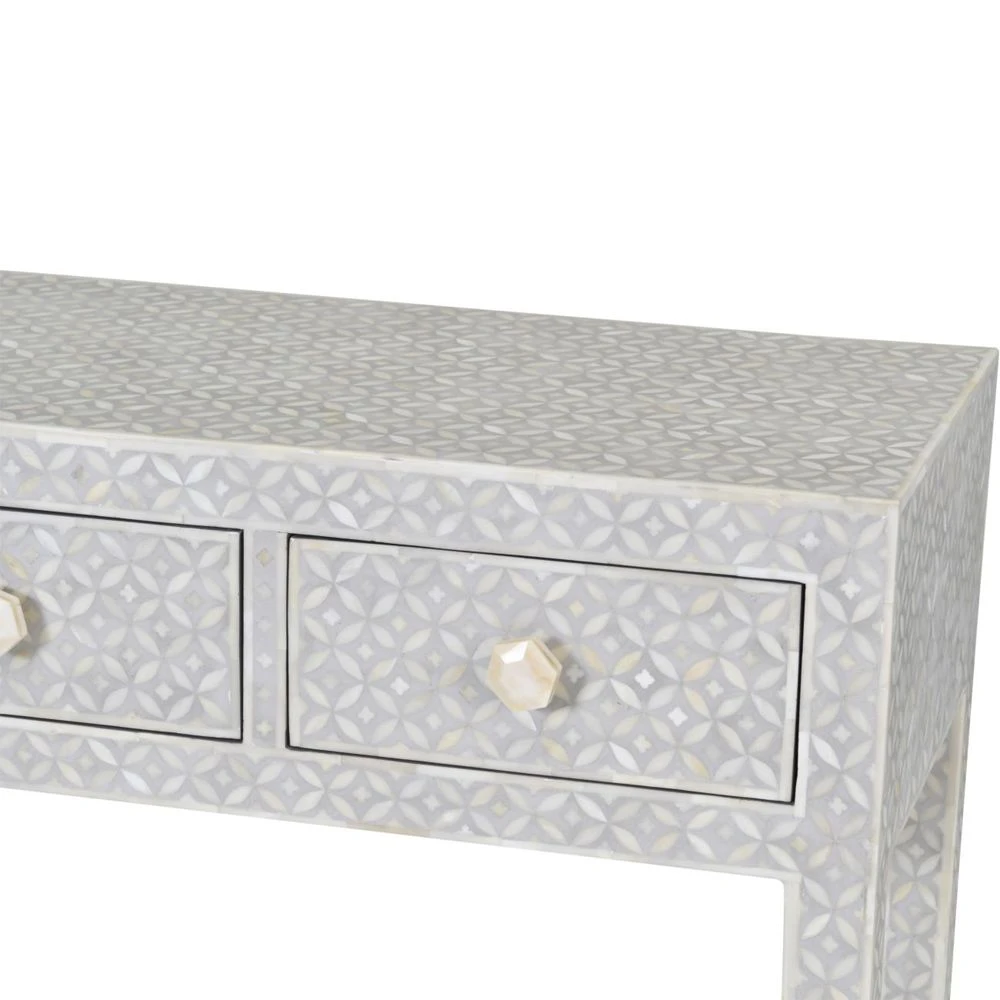 Add a touch of timeless elegance to your hallway or living room with the gorgeous Tifton Console Table. Boasting elaborate, hand-applied bone inlay details, this eye-catching piece is an excellent choice for adding personality and style to your home and can be decorated with a wonderful table lamp and a beautiful floral arrangement.
