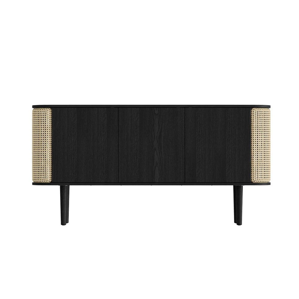 The chic and contemporary black Treasures Cabinet is the perfect storage solution for keeping your living or dining area organised. Made from black-finished oak and accentuated by woven rattan detailing, this lovely piece will add style and beautiful texture to your home.