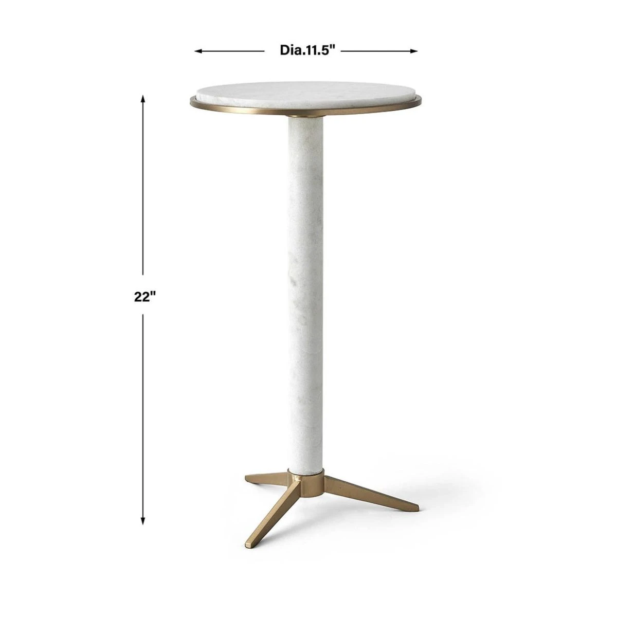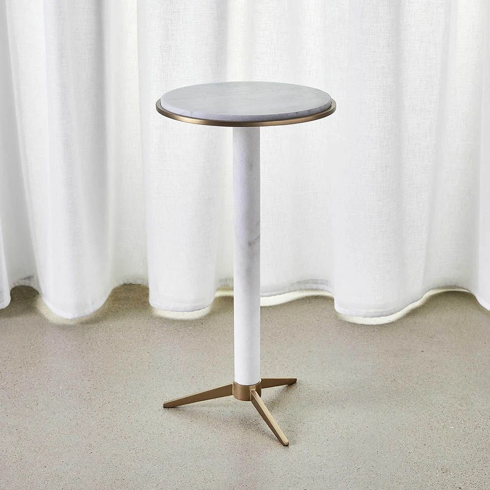 Stake your claim on the sofa and stay a while, with assistance from the Dwell Accent Table. Three angled feet in satin brass finish support a floating column of white marble. The marble and satin brass circular top is the perfect place to rest your drink and add a touch of glamour to your interiors.