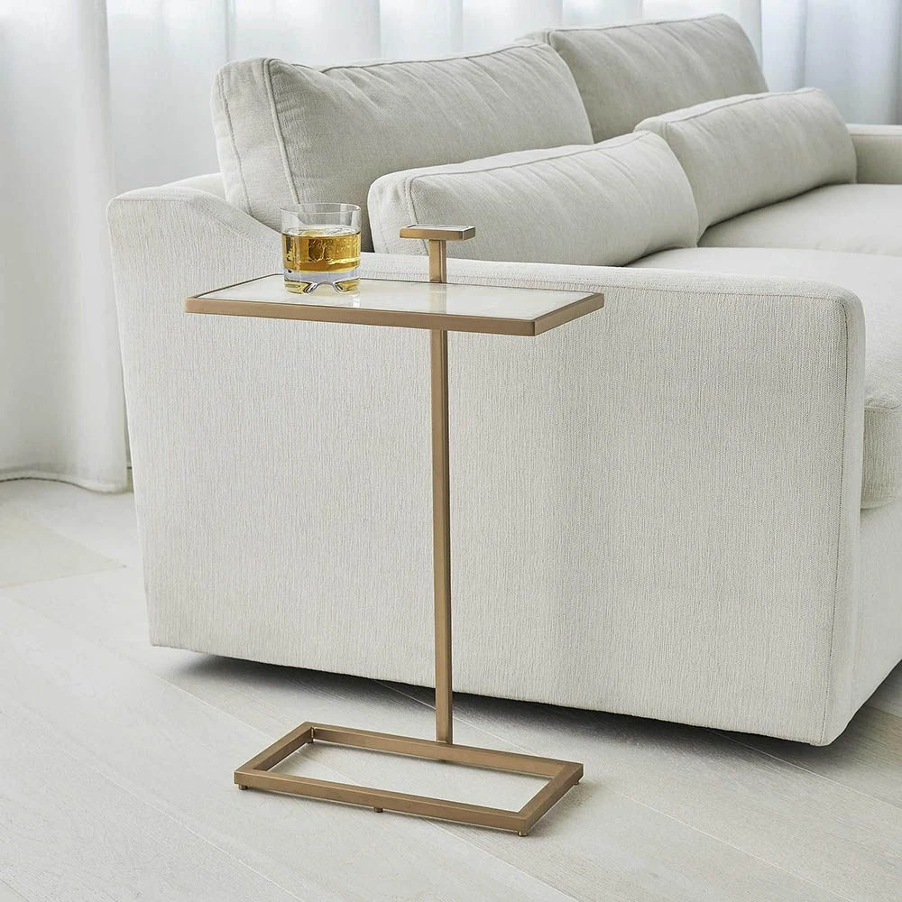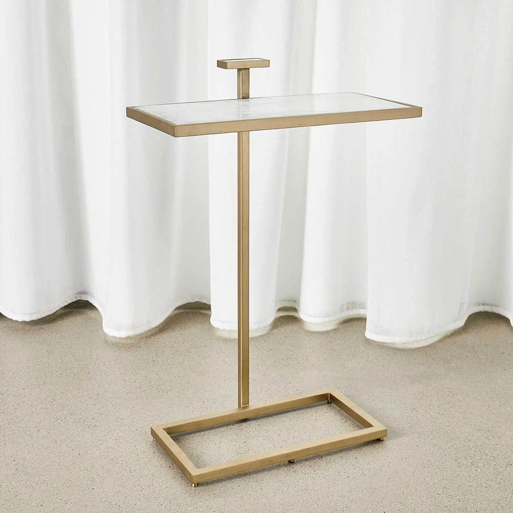 The Jewel Pull-Up Accent Table is an irresistible combination of beauty and function. The quartz crystal top and handle inset are framed in a rich brass finish for a contemporary appeal. This table is ideal for pulling up to your favourite seat and enjoying a beverage.